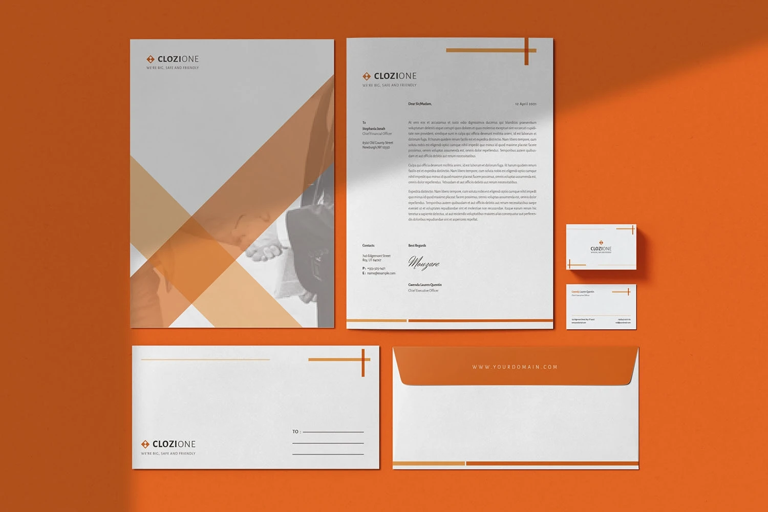 Clozione - Stationary. This template is great for your business and this design will make your interested, elegant, and easily editable according to your needs. I hope you enjoy for this stationary.