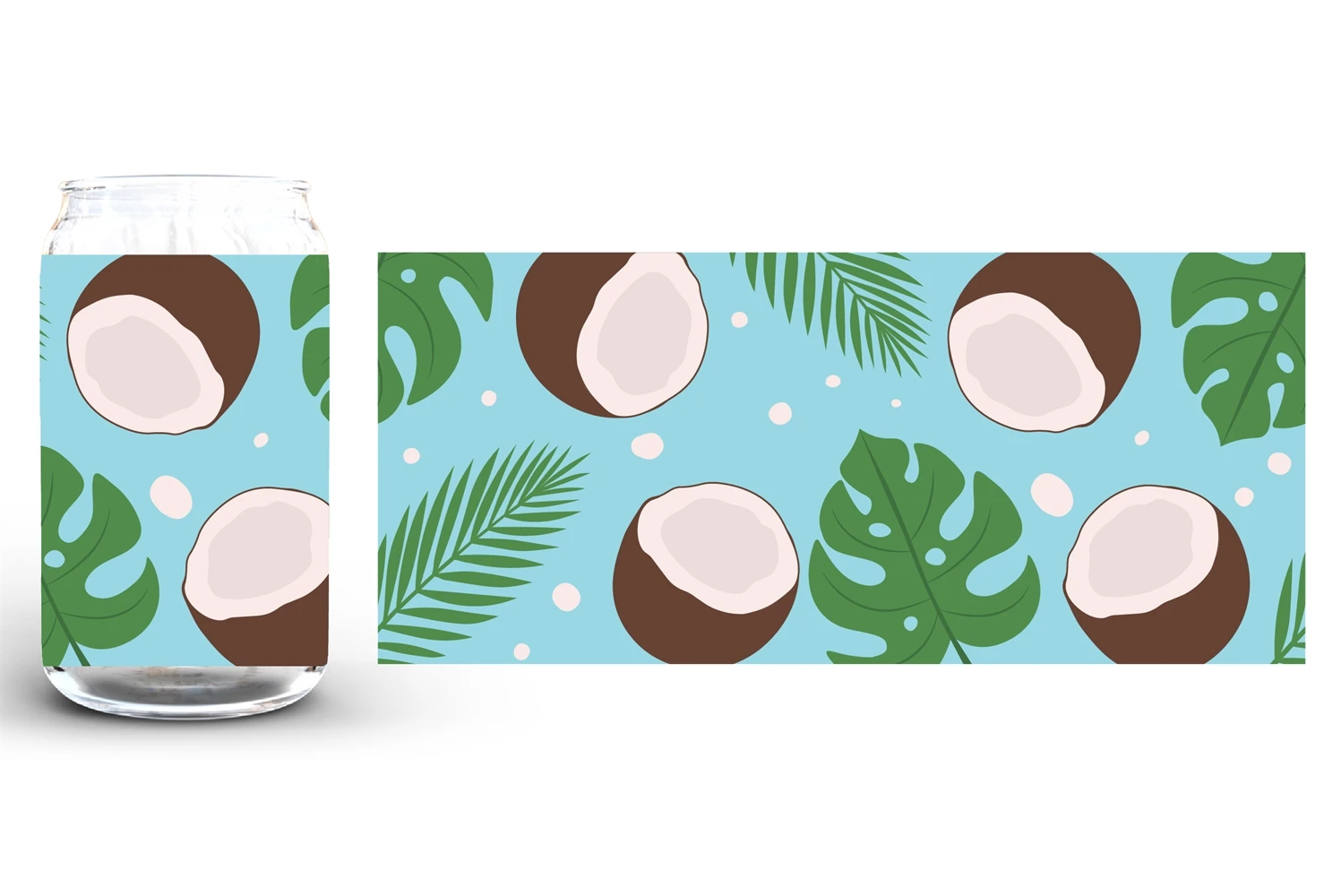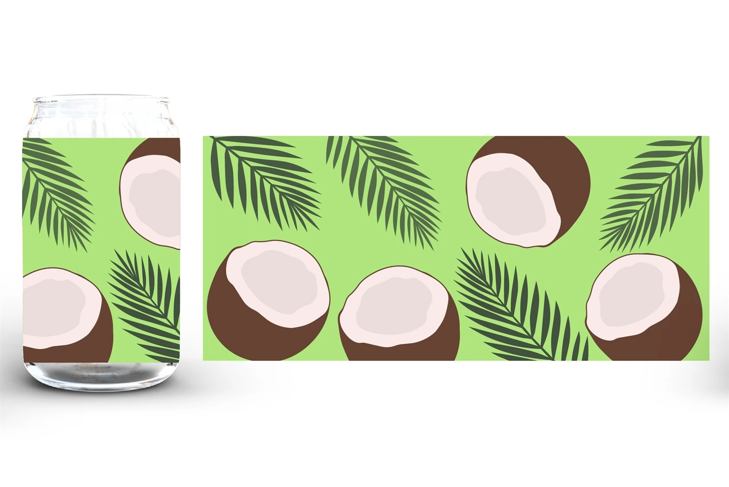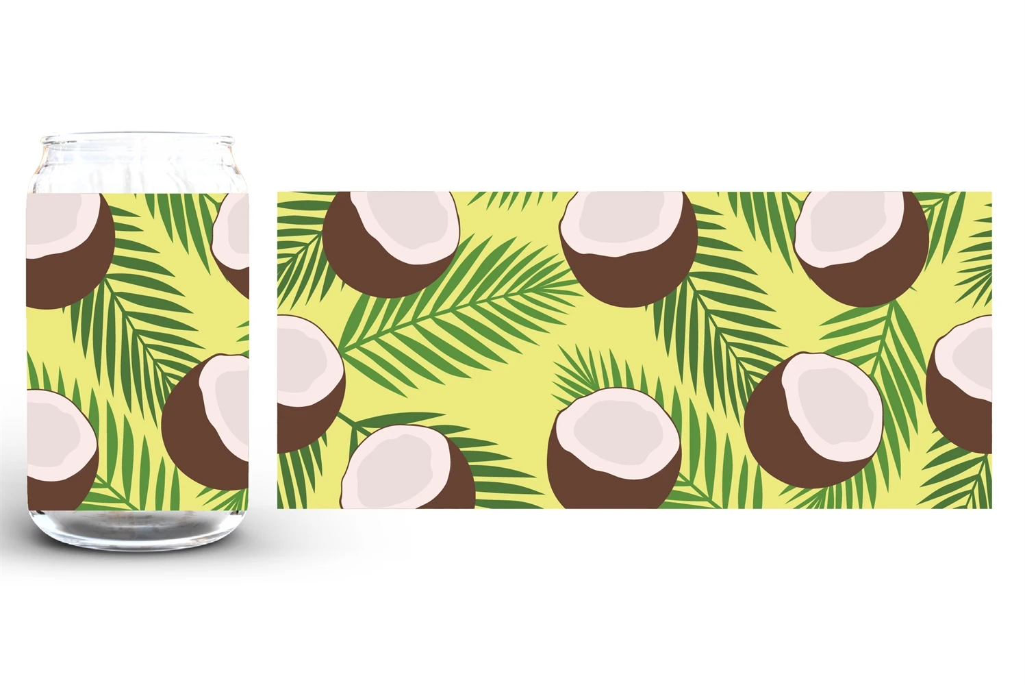 Coconut Can Glass Wrap. Tropical leaves Can Glass Wrap