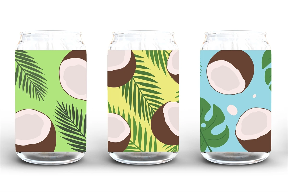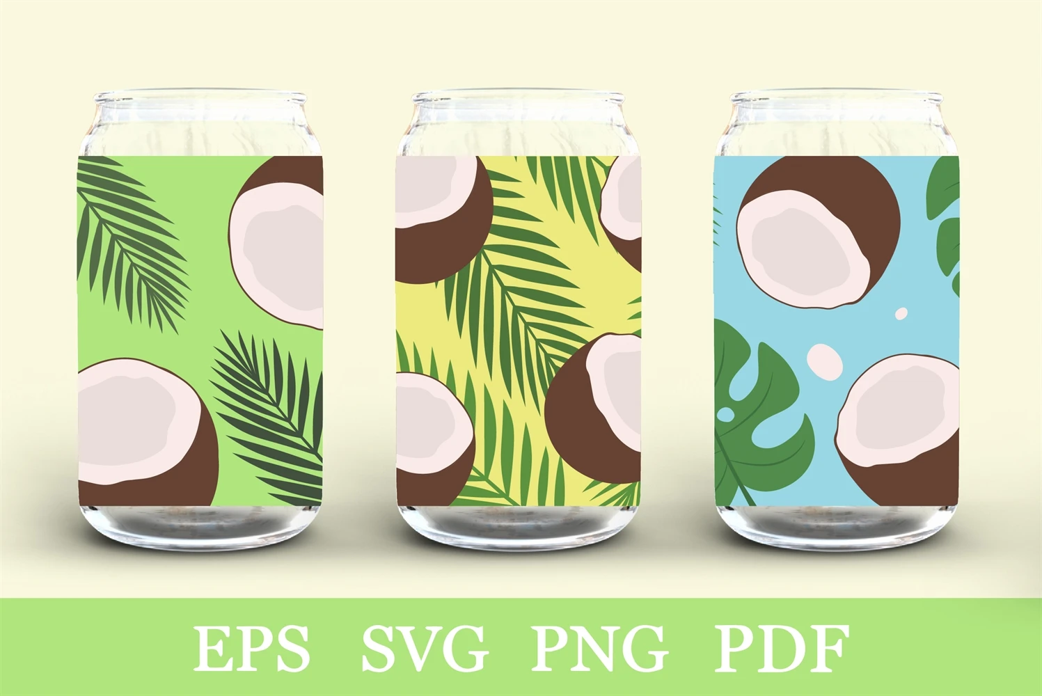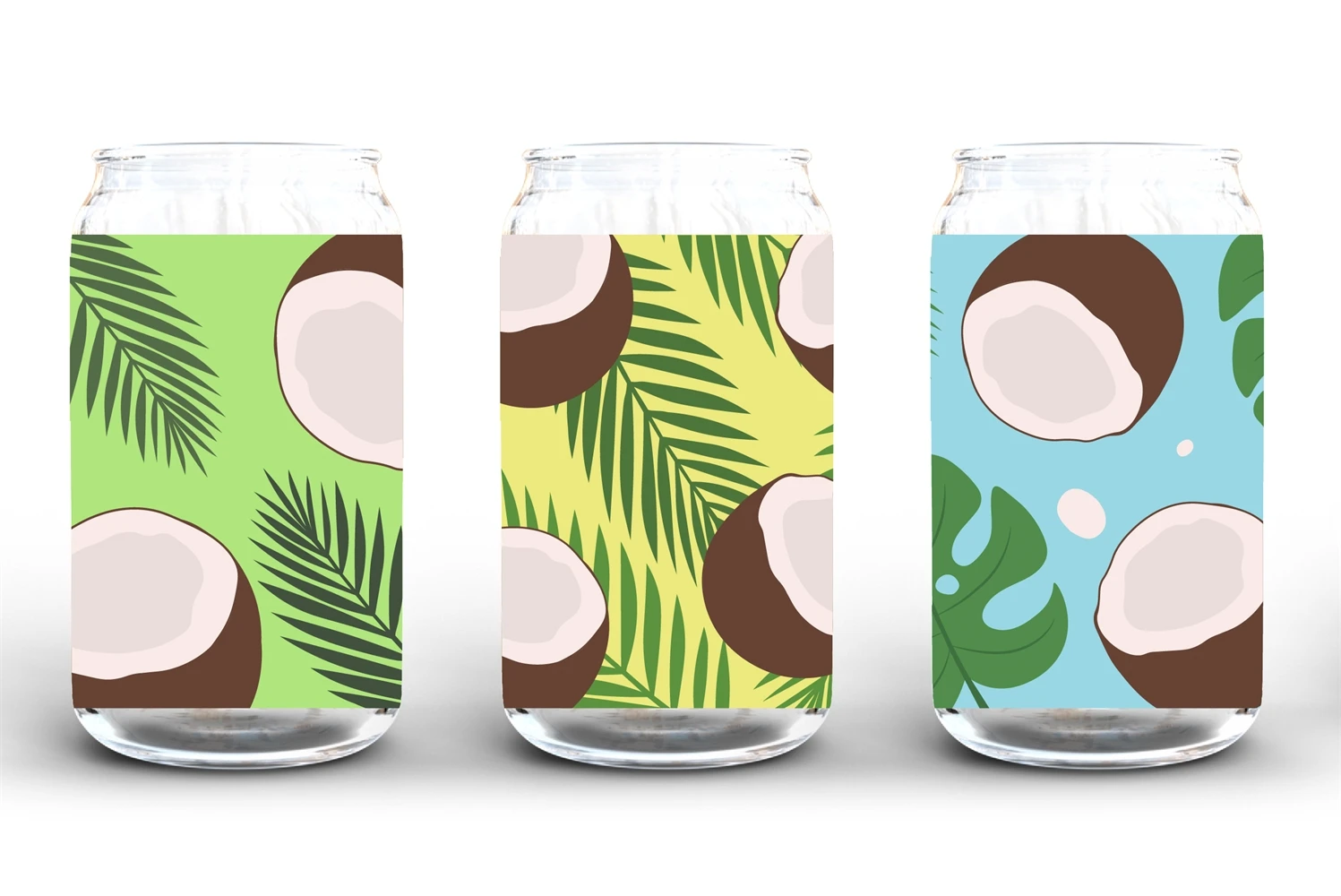 Coconut Can Glass Wrap. Tropical leaves Can Glass Wrap
