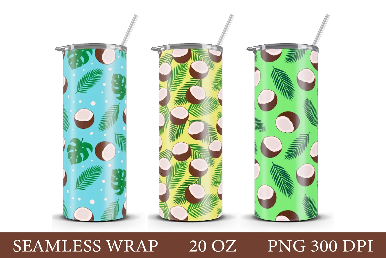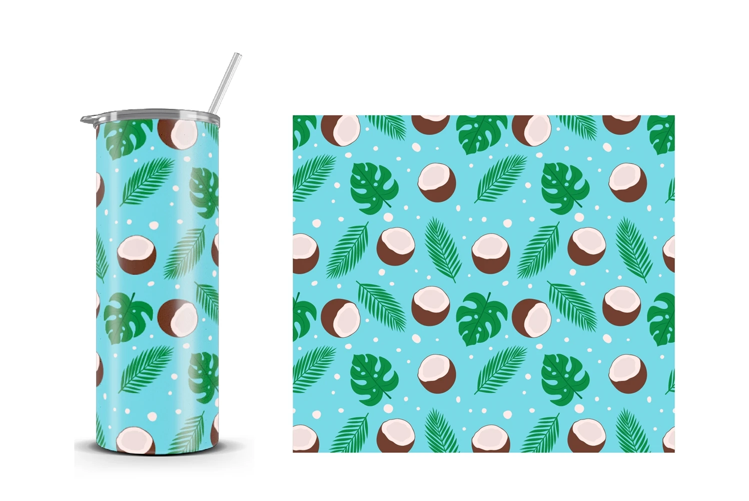 Coconut Tumbler Wrap. Tropical leaves Tumbler Wrap