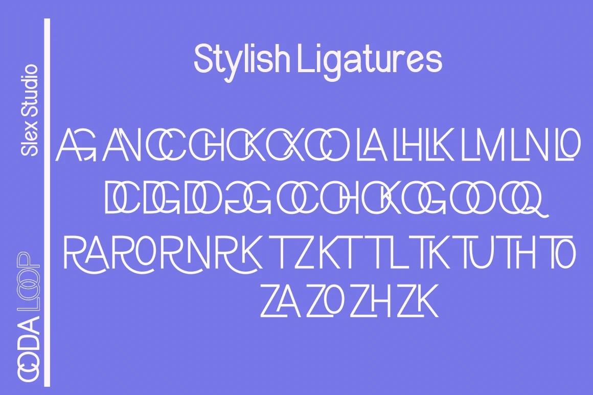 Coda Loop comes with uppercase, lowercase, numbers, punctuation and so many variations on each character including common ligatures as well as additional strokes to allow you to customize your designs. This font is perfect for Logotypes, Letterheads, Formal Letters, Newspapers, Posters, Clothing Designs, Labels, and more.