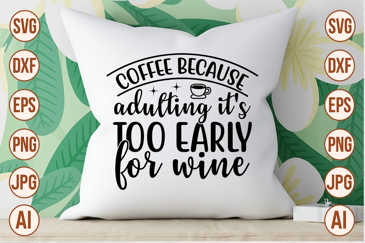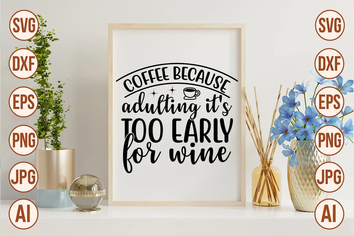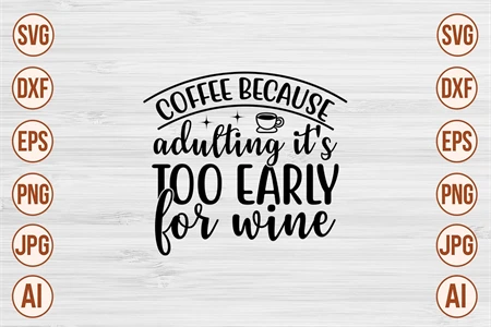 Coffee Because Adulting It's Too Early For Wine svg Cut File