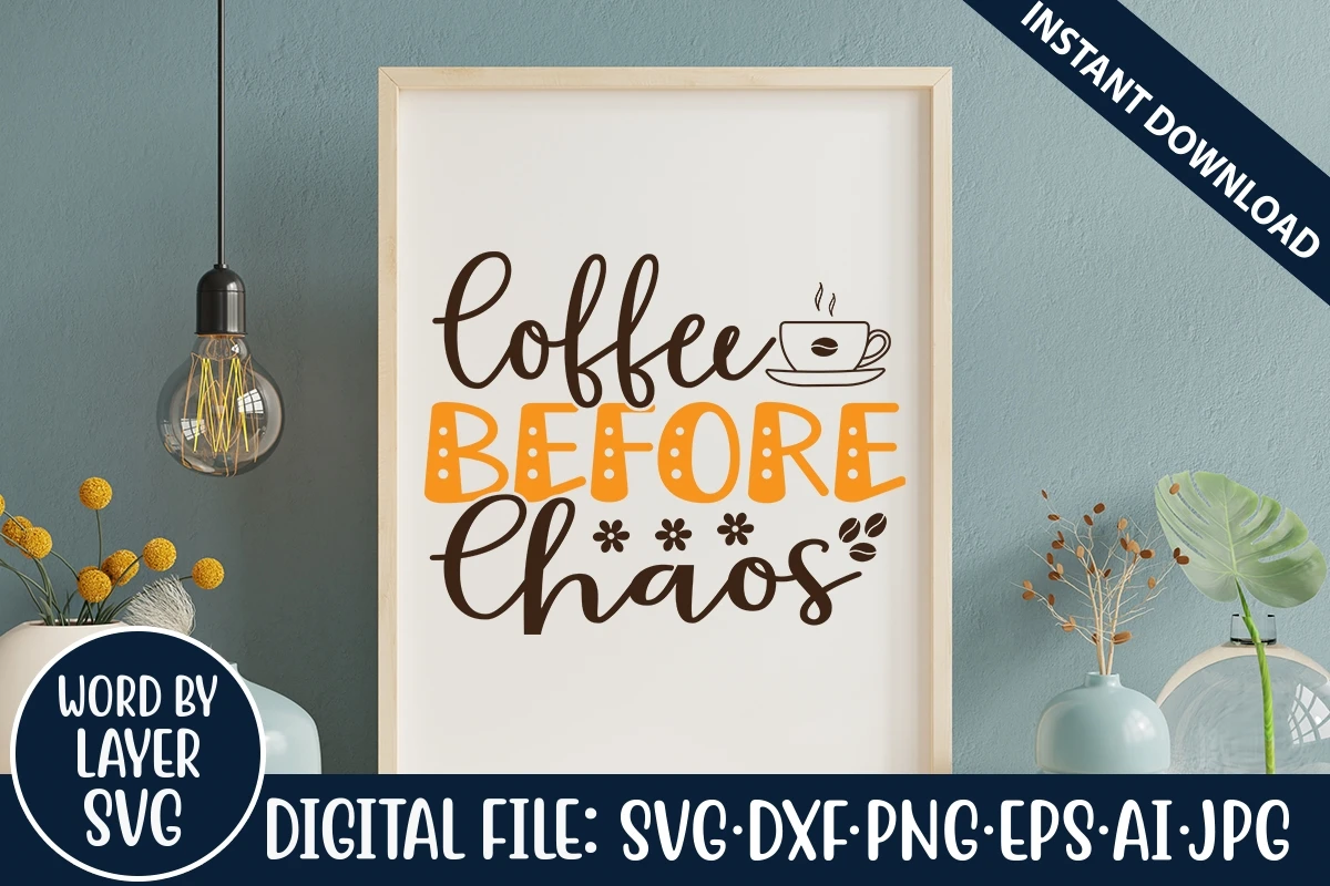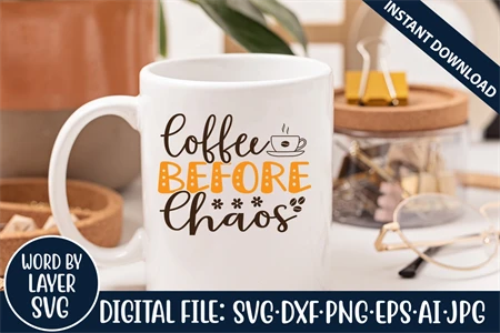 Coffee Before Chaos SVG Design, SVG Cut Files