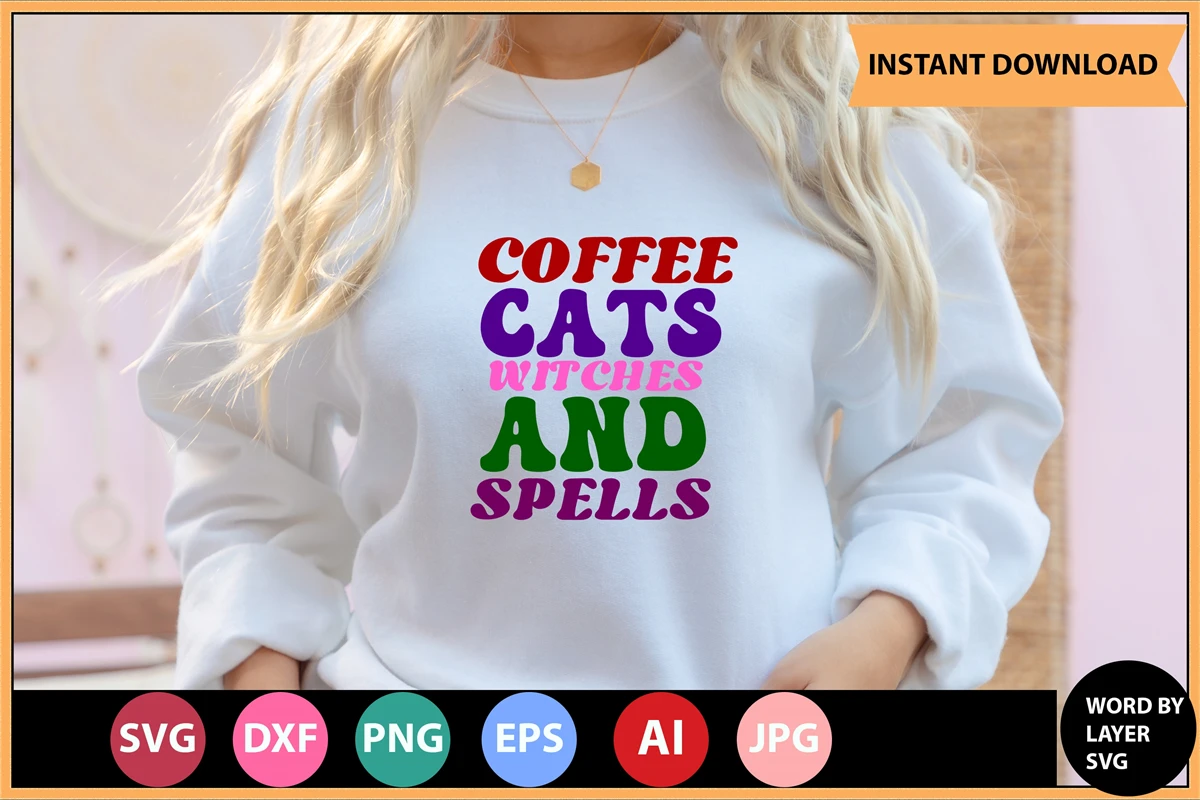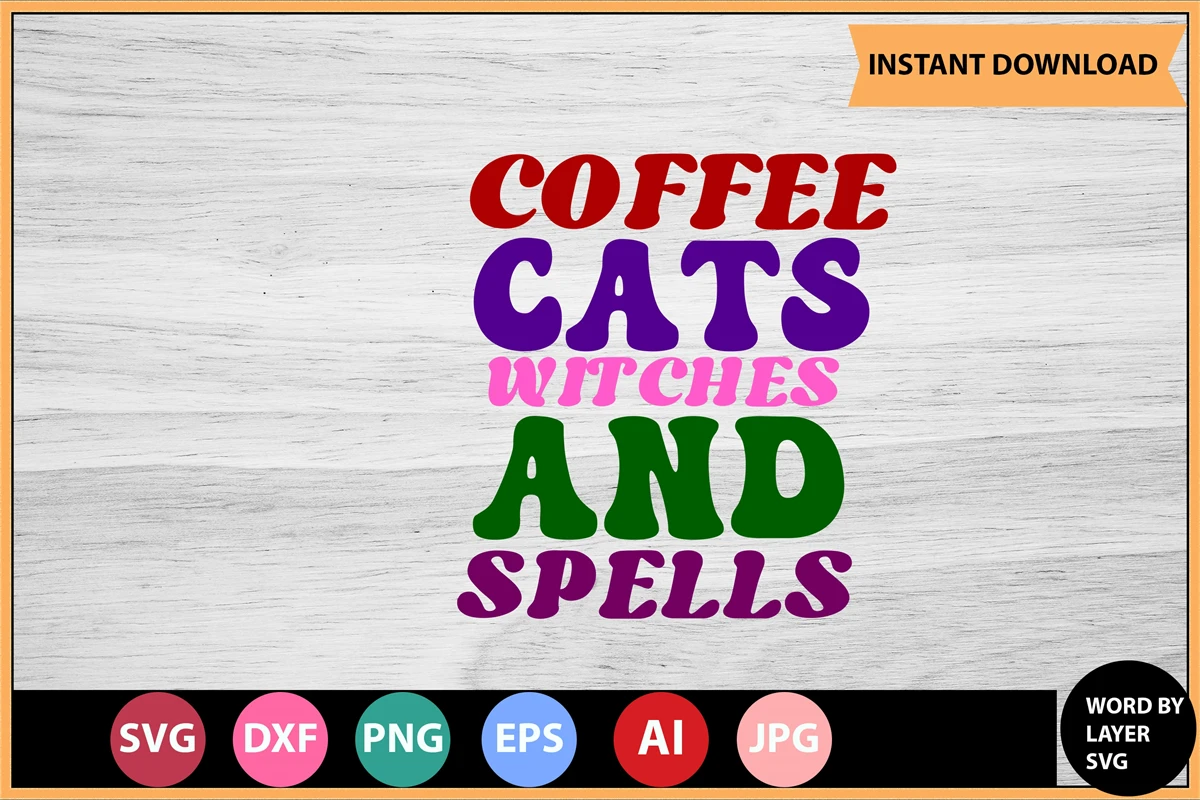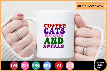 Coffee Cats Witches And Spells Retro SVG Design