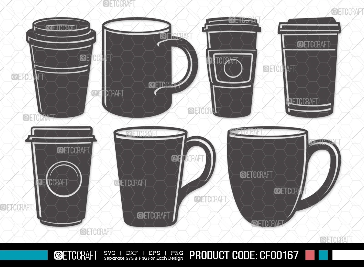 Welcome to our Coffee Cup Silhouette Hot Coffee Mug SVG Cut File Bundle! Elevate your projects with the charm of coffee, elegantly portrayed through our carefully designed coffee cup silhouettes. Immerse yourself in the cozy ambiance of a fresh brew as you infuse creativity into your crafts.