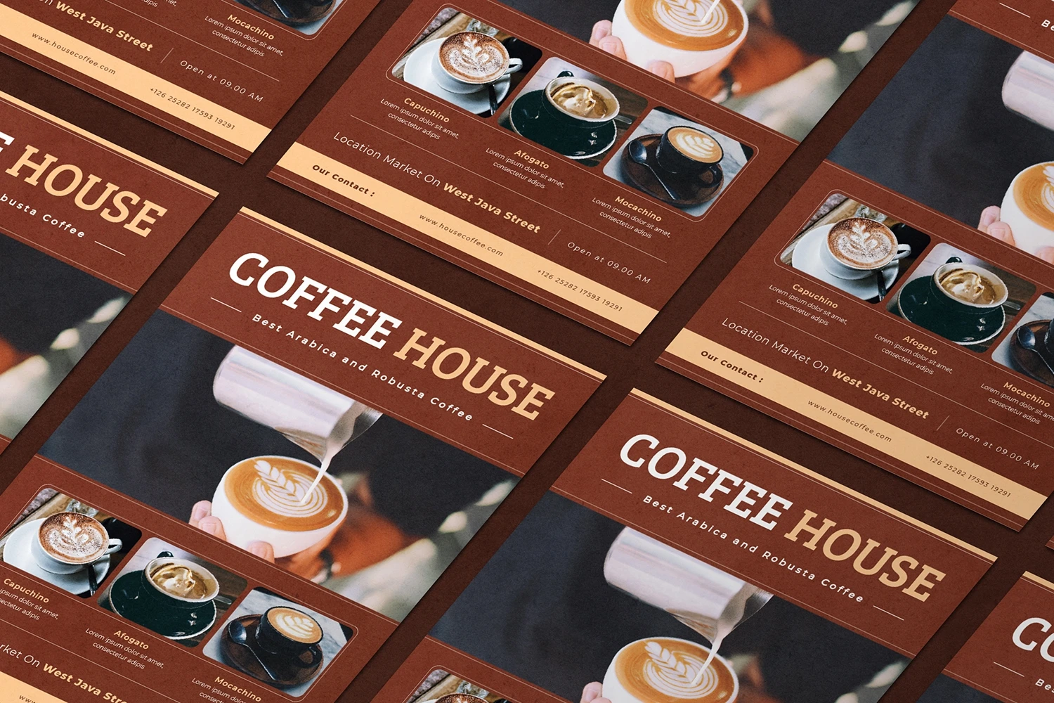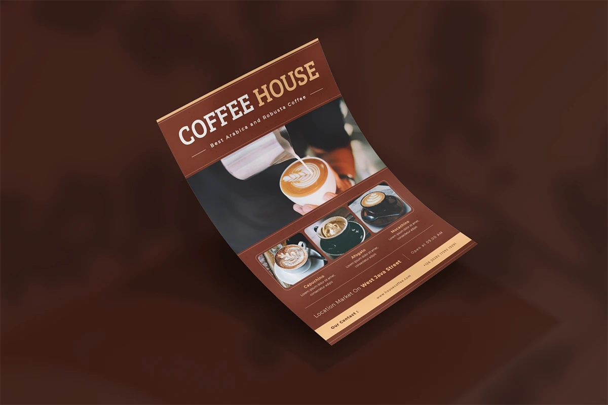 Coffee House - Flyer. This Flyer template is designed for your company's business needs. very clean and elegant, and also easily edited and adjusted to your liking