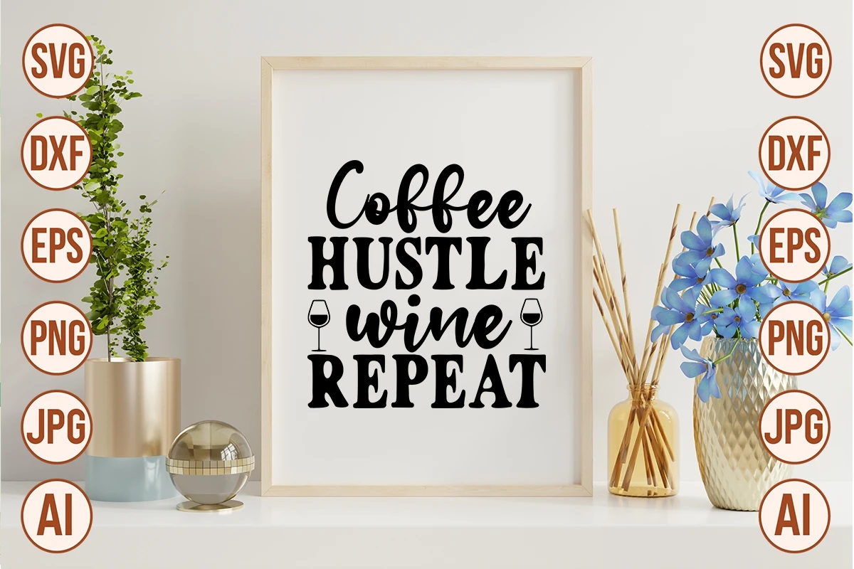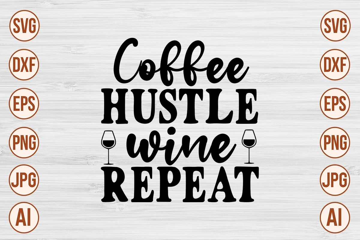 Coffee Hustle Wine Repeat SVG Cut File