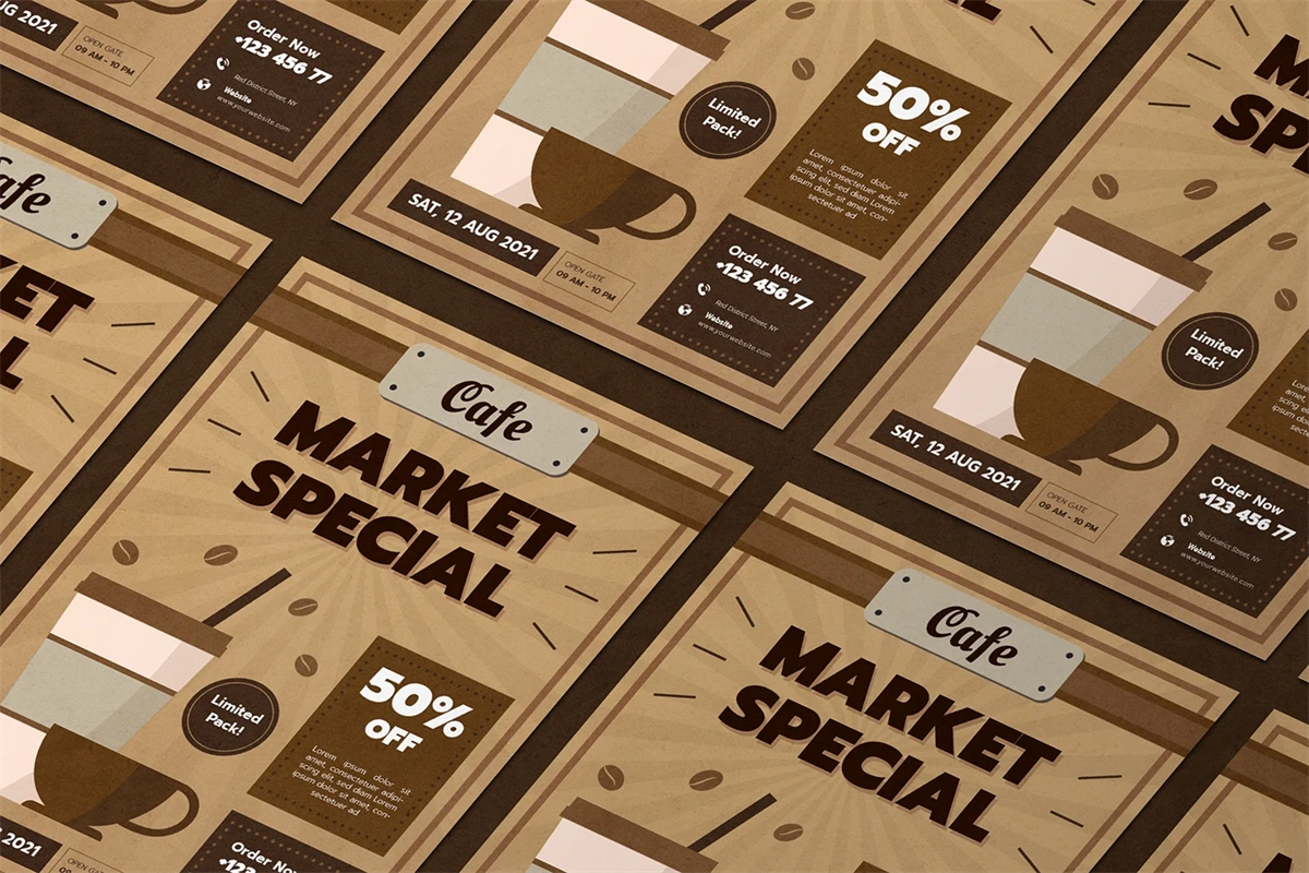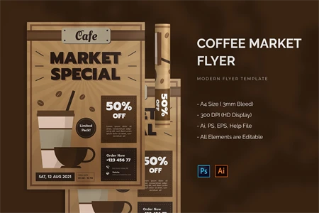 Coffee Market - Flyer. This Flyer template is designed for your company's business needs. very clean and elegant, and also easily edited and adjusted to your liking