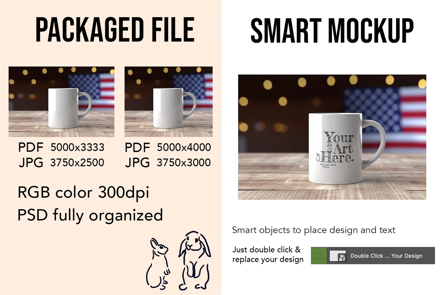 Coffee mug mockup with Photoshop (PSD) template for drawing design, pattern, svg, art and graphic designs.