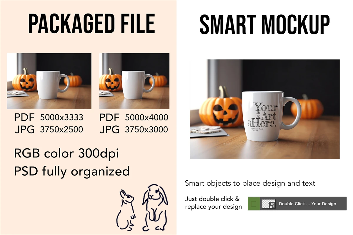 Coffee mug mockup with Photoshop (PSD) template for drawing design, pattern, svg, art and graphic designs.
