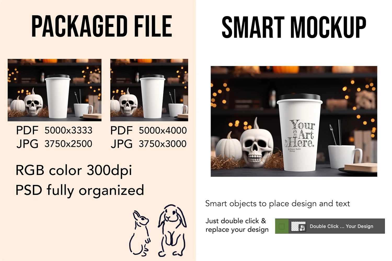 Coffee mug mockup with Photoshop (PSD) template for drawing design, pattern, svg, art and graphic designs.
