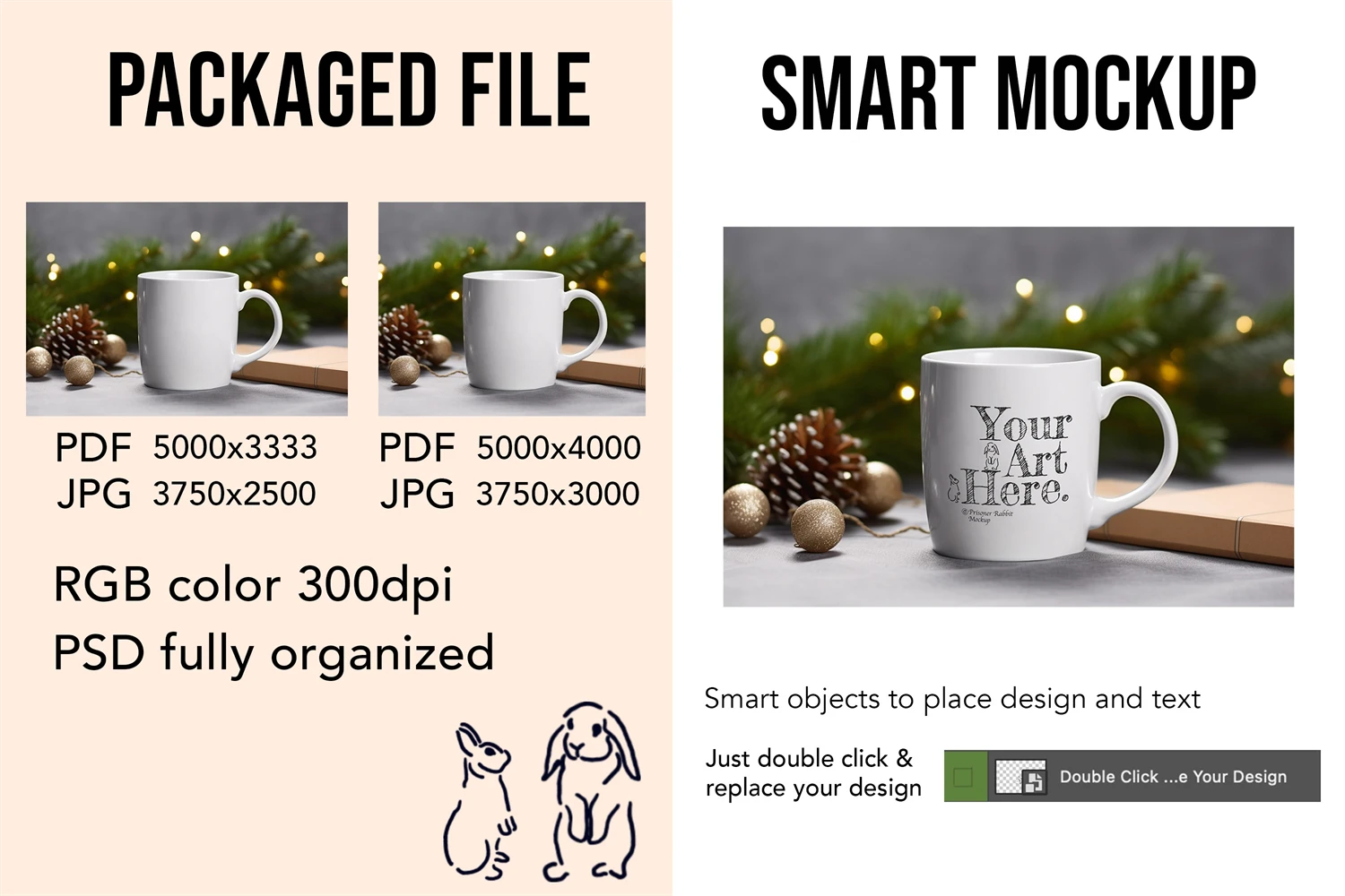 Coffee mug mockup with Photoshop (PSD) template for drawing design, pattern, svg, art and graphic designs.