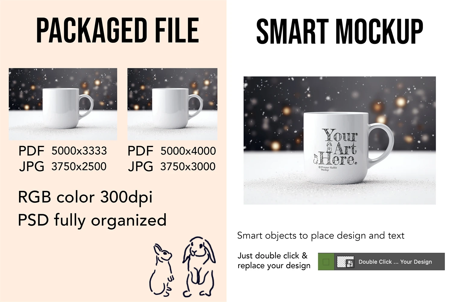 Coffee mug mockup with Photoshop (PSD) template for drawing design, pattern, svg, art and graphic designs.