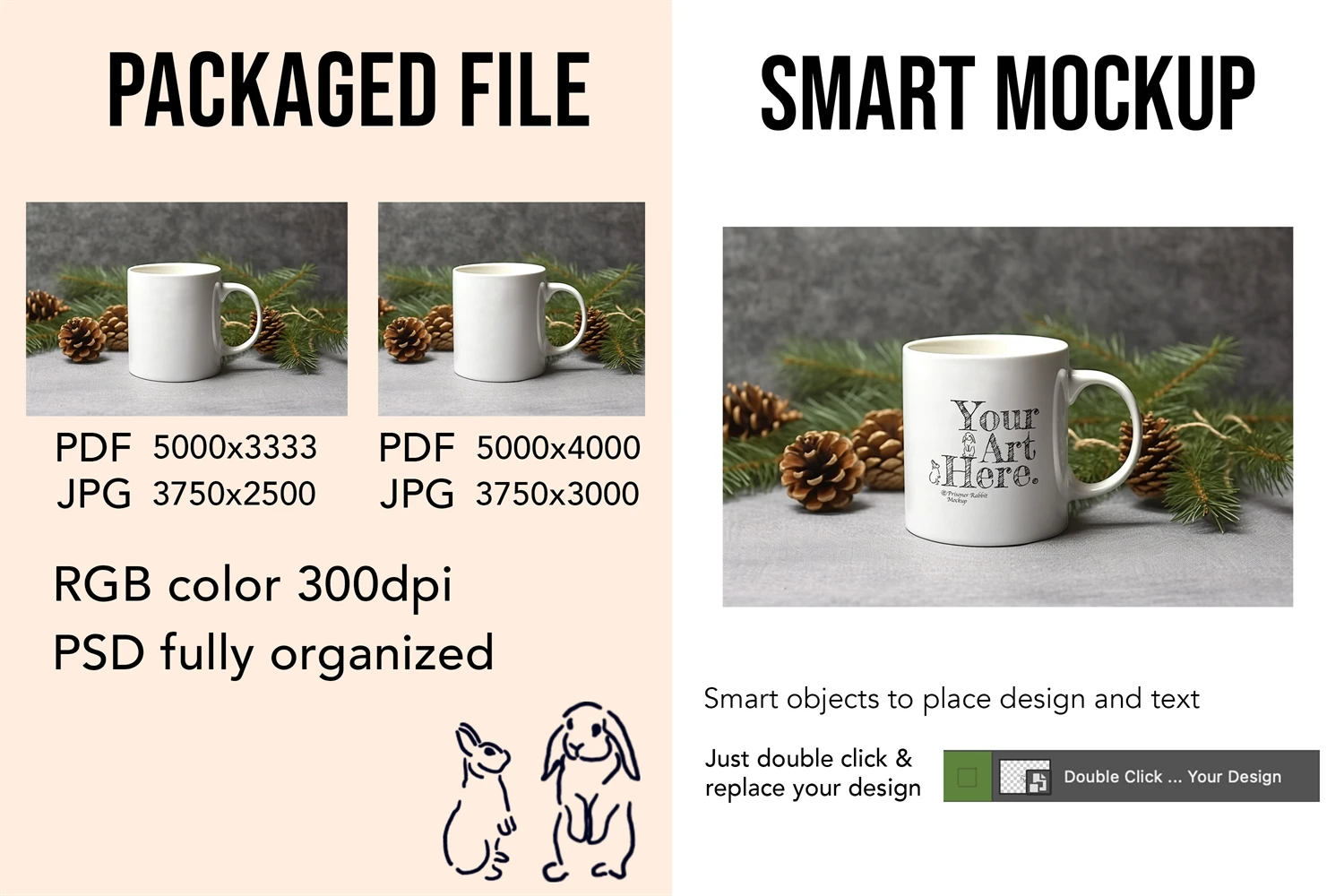 Coffee mug mockup with Photoshop (PSD) template for drawing design, pattern, svg, art and graphic designs.