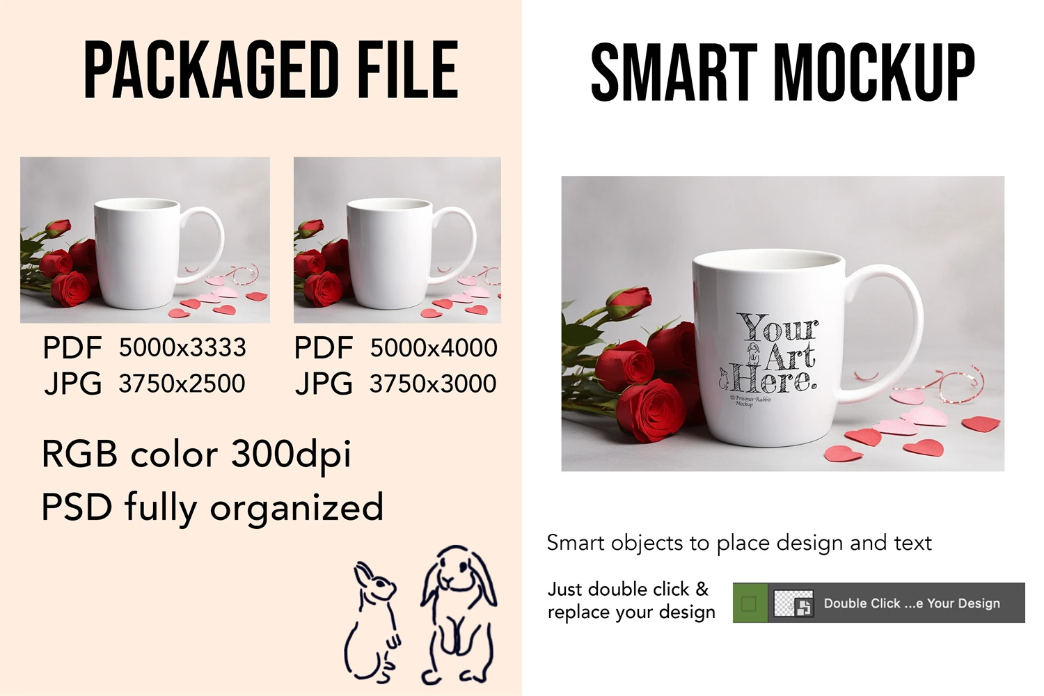 Coffee mug mockup with Photoshop (PSD) template for drawing design, pattern, svg, art and graphic designs.