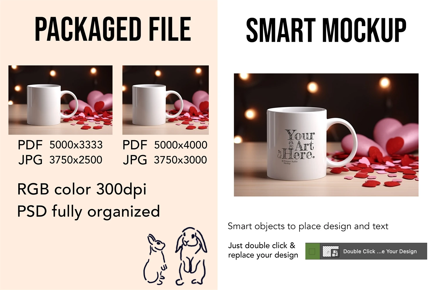 Coffee mug mockup with Photoshop (PSD) template for drawing design, pattern, svg, art and graphic designs.