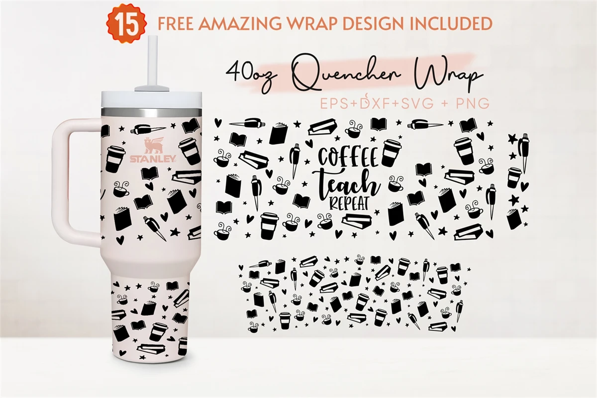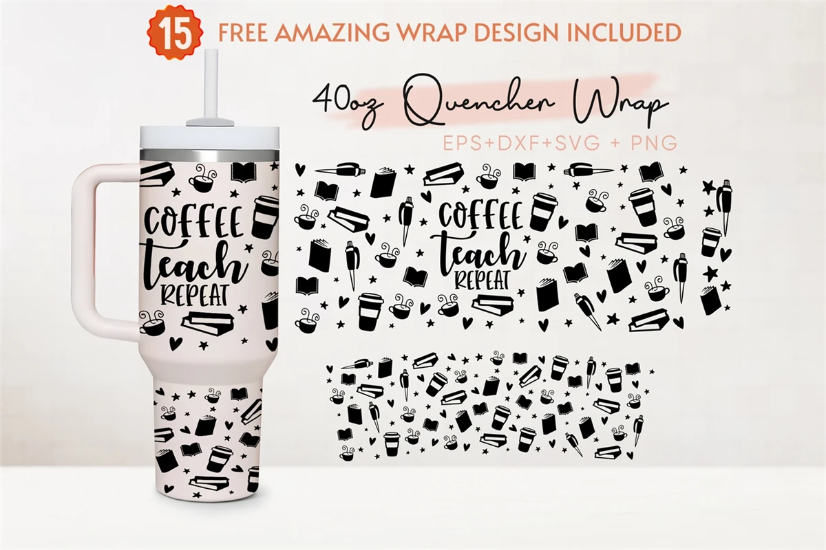Coffee Teach Repeat 40oz Quencher Tumbler, Teacher Fuel, Svg