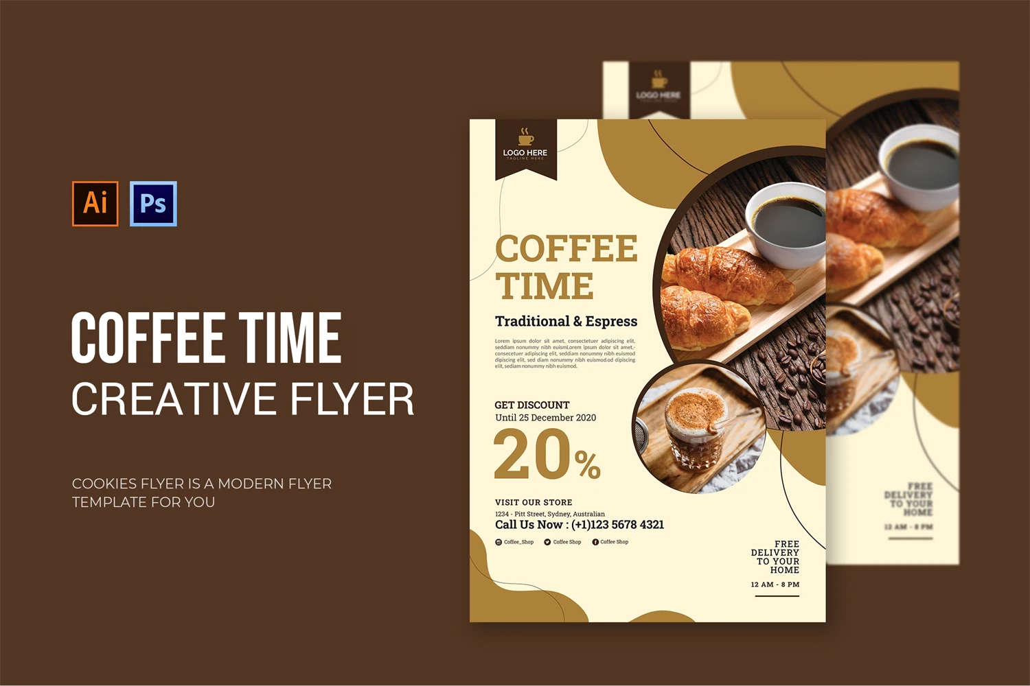 Coffee Times - Flyer. This Flyer template is designed for your company's business needs. very clean and elegant, and also easily edited and adjusted to your liking