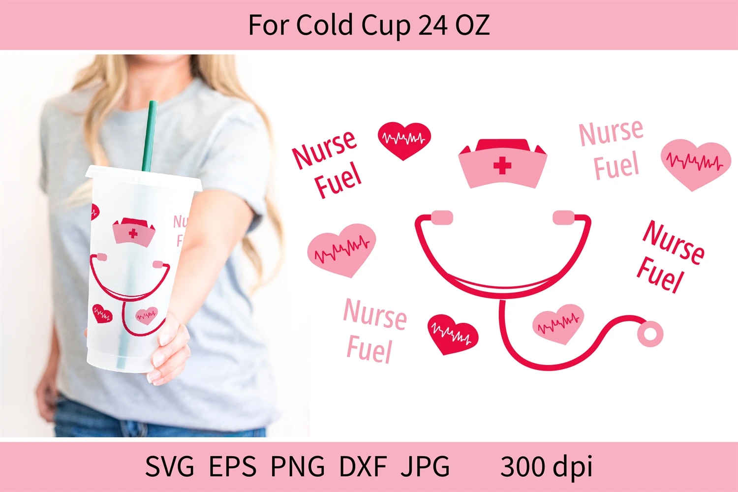 Cold Cup Wrap SVG, 24 OZ, Nursing Tumbler, Valentines Day Nurse, Valentines Nurse SVG, Valentines Nurse, Cold Cup SVG, Starbucks Cold Cup Wrap, Starbucks Cup, Starbucks SVG, Starbucks Cold Cup, Cold Cup Tumbler