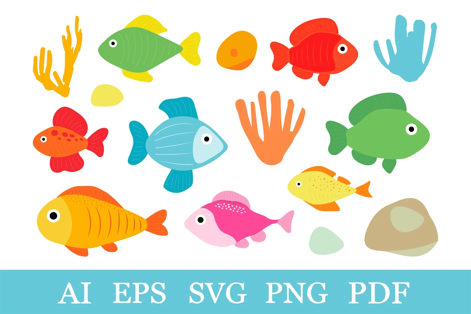 Collection Colorful fish SVG. Undersea world SVG. Coral SVG