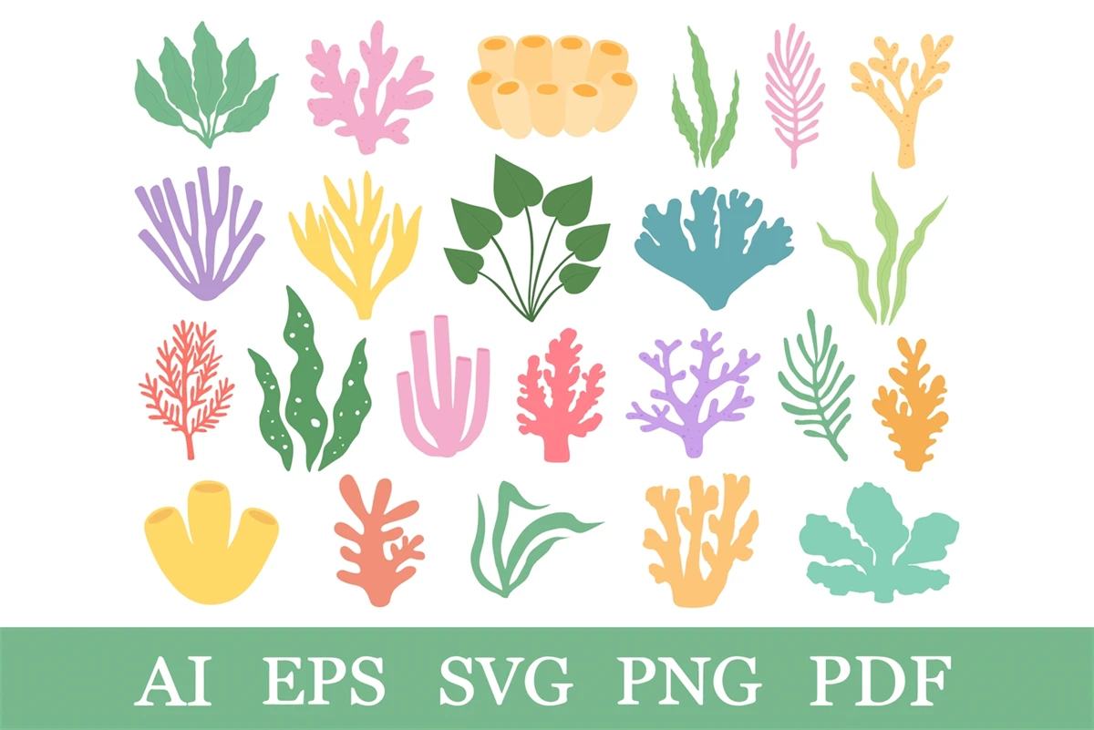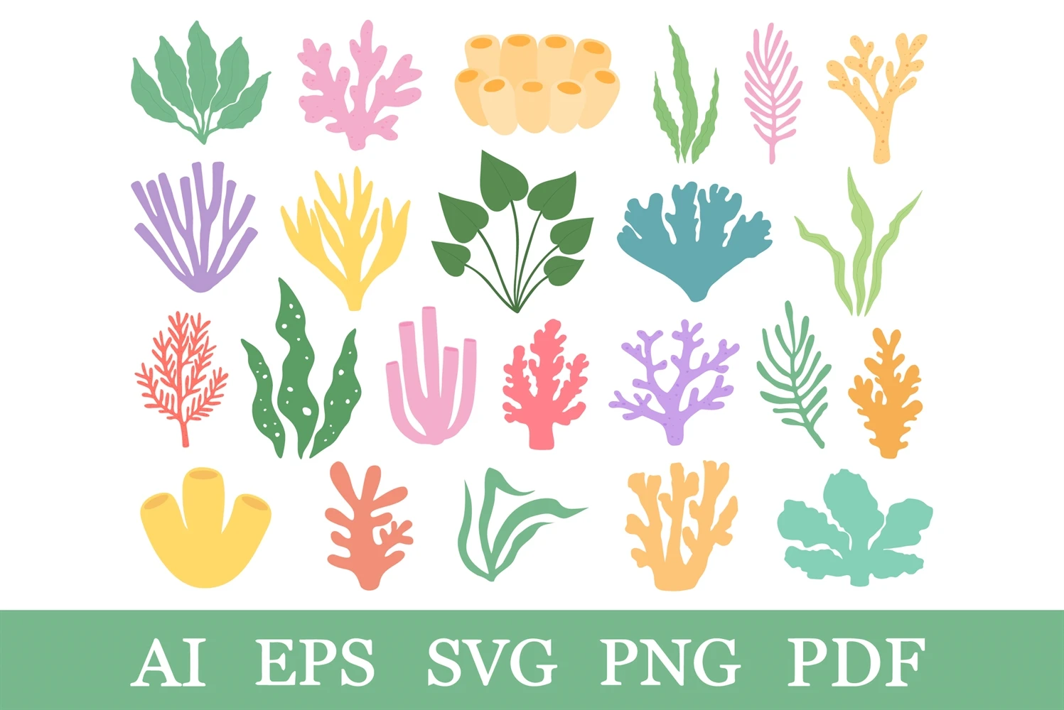 Collection sea coral SVG. Seaweed SVG. Undersea world SVG