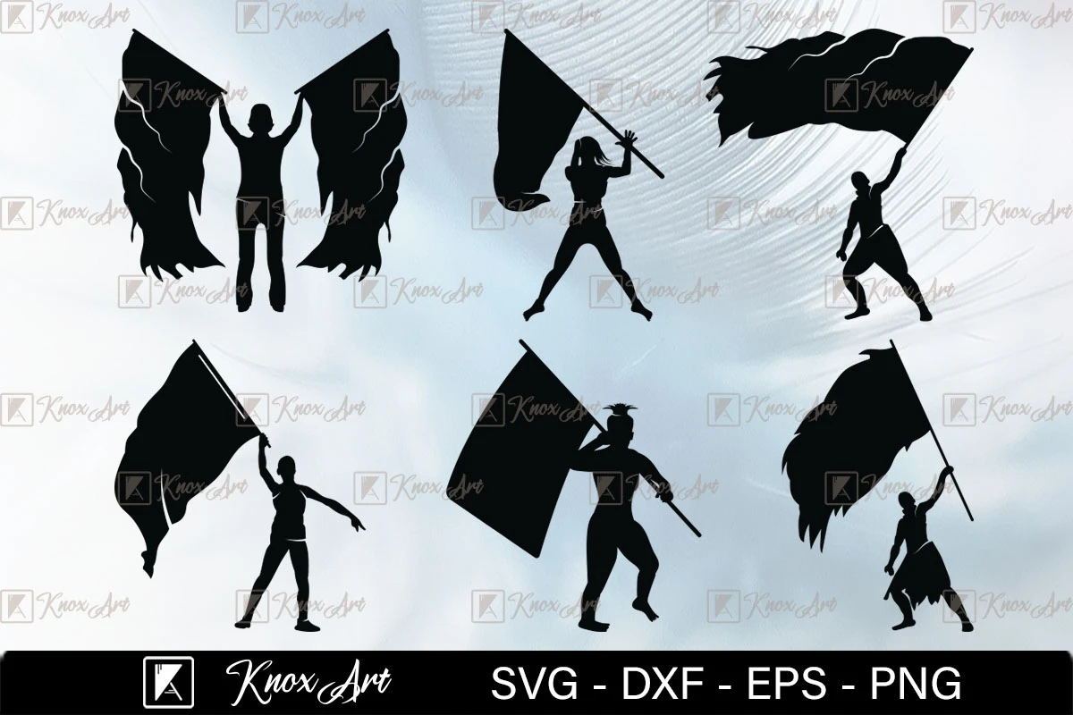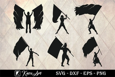 This color guard silhouette bundle is perfect for any color guard enthusiast! It include different silhouette designs, including flags, rifles, and sabers. The designs are available in SVG, DXF, EPS, and PNG formats, so you can use them with a variety of cutting machines and software programs.