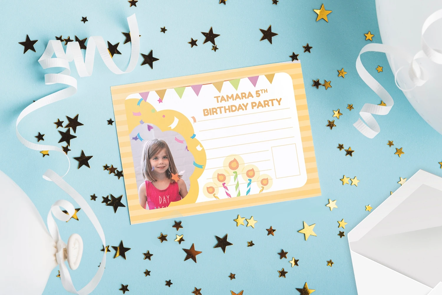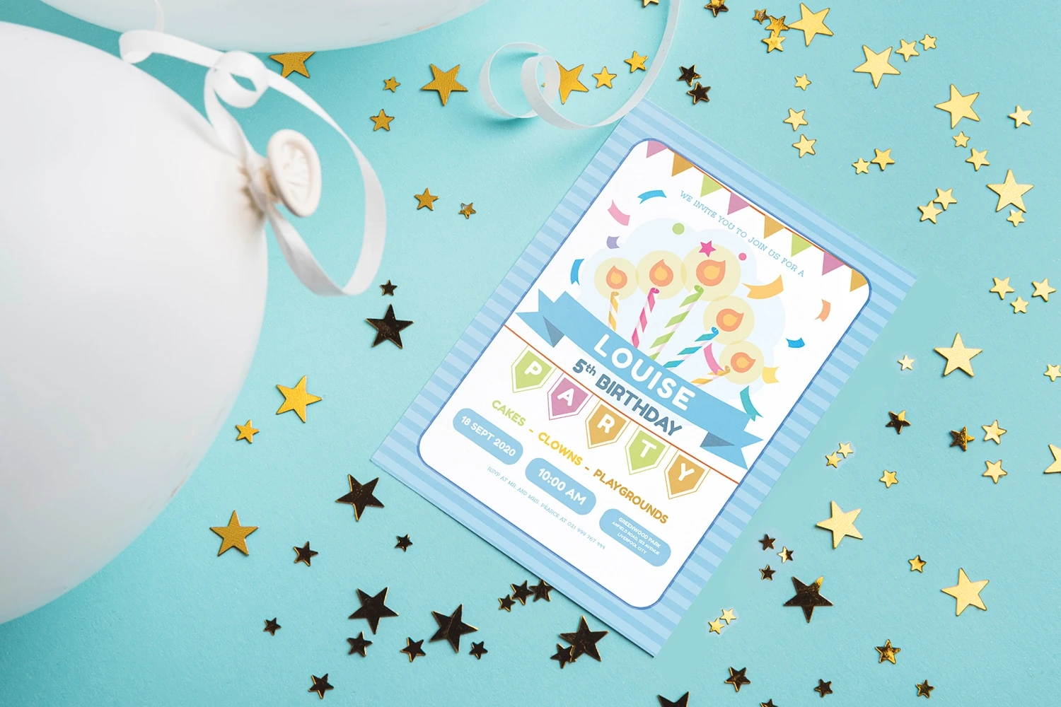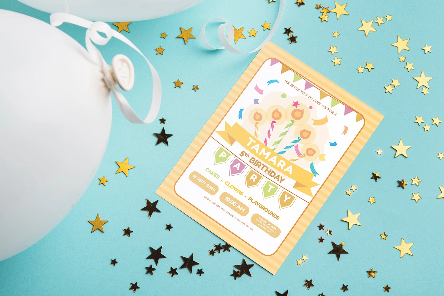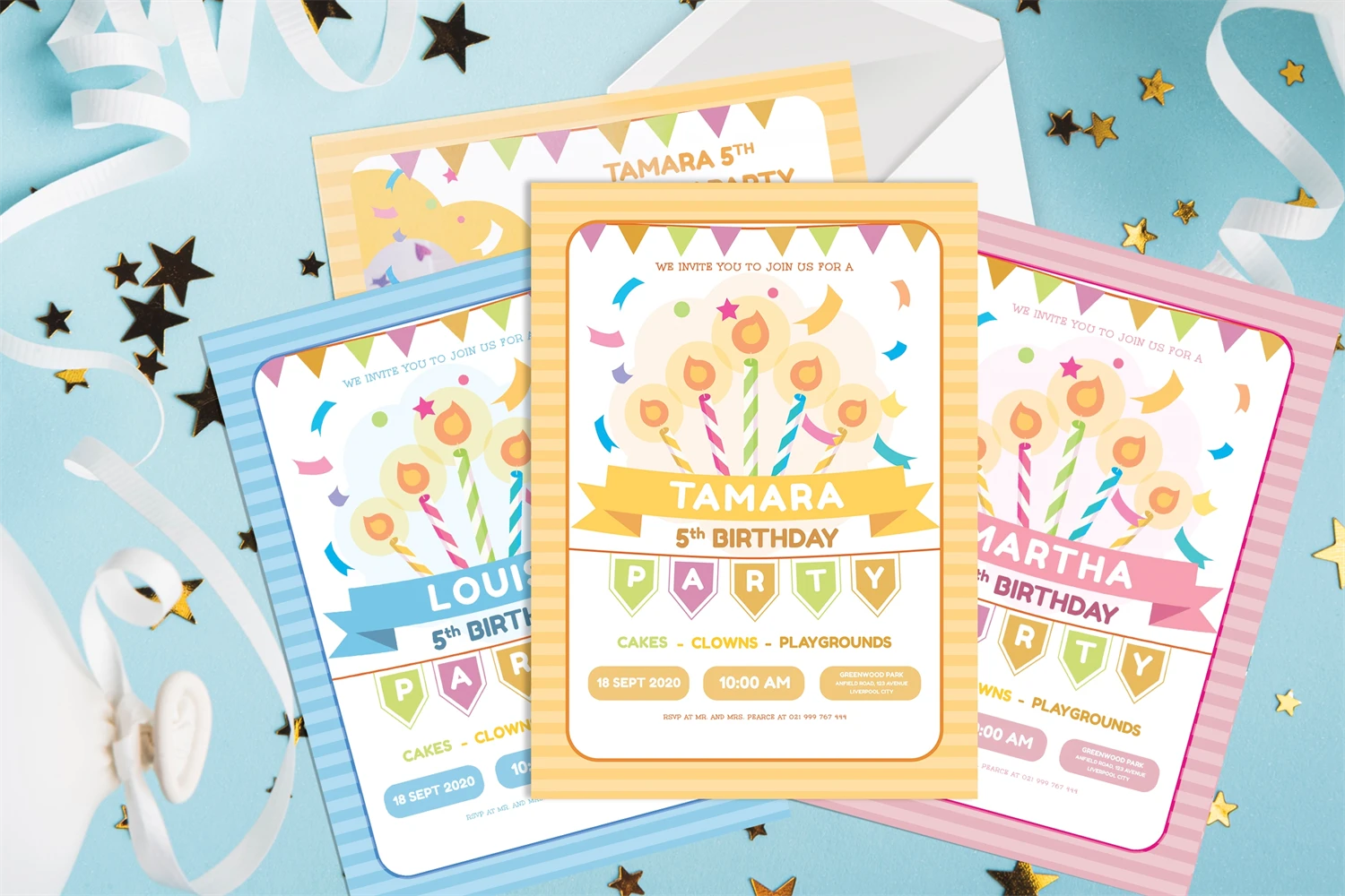 Colorful Candles - Kids Birthday Invitation, is an invitation card leaflet, poster design, etc. Simple and very elegant You can easily edit & adjust each design because each layer such as text, images and shapes are well organized and highlighted.