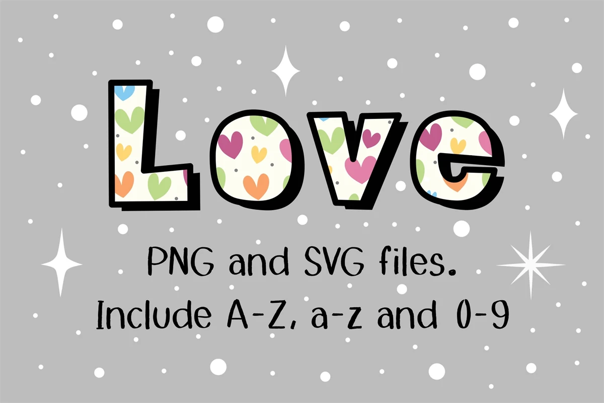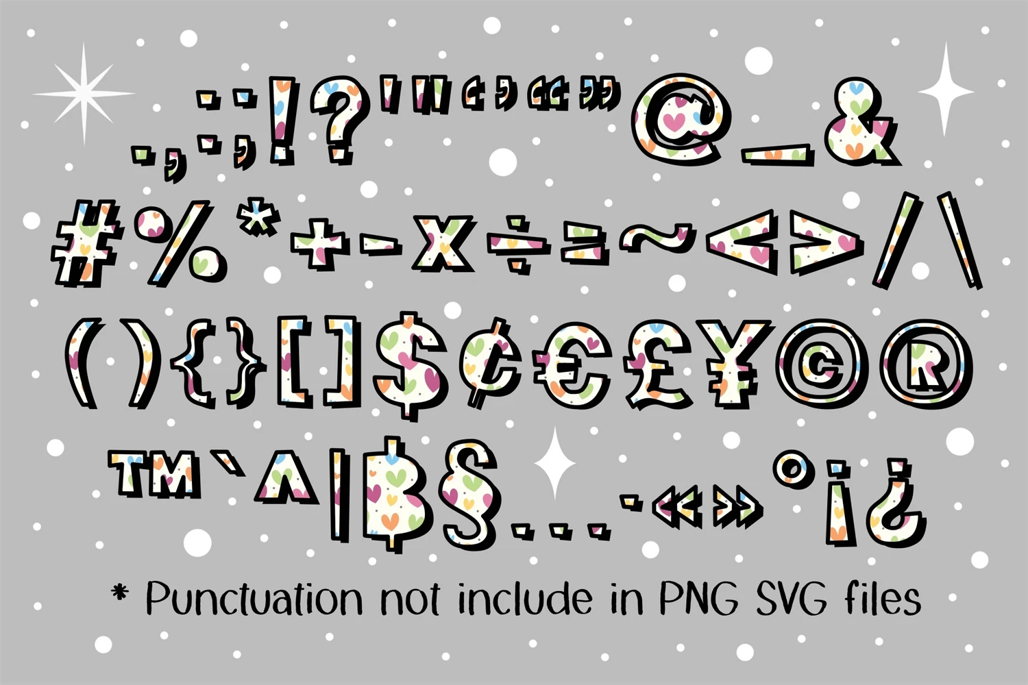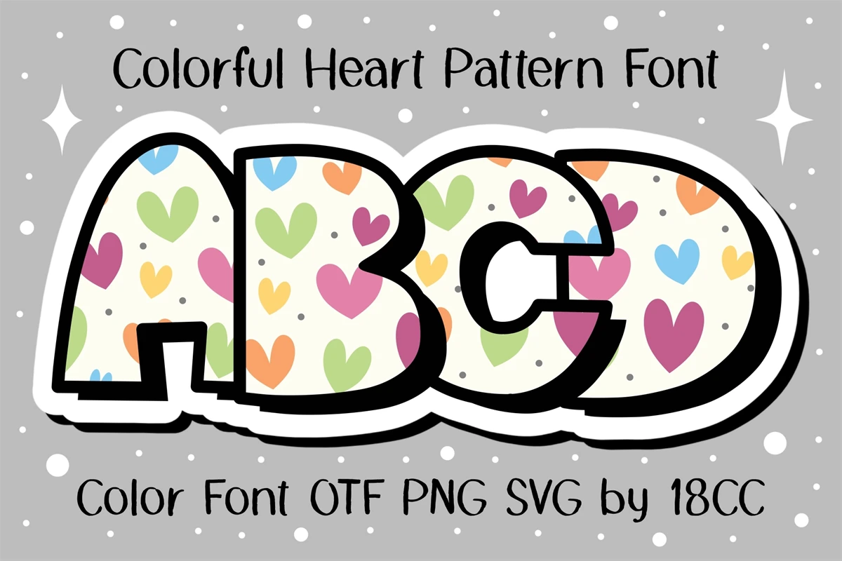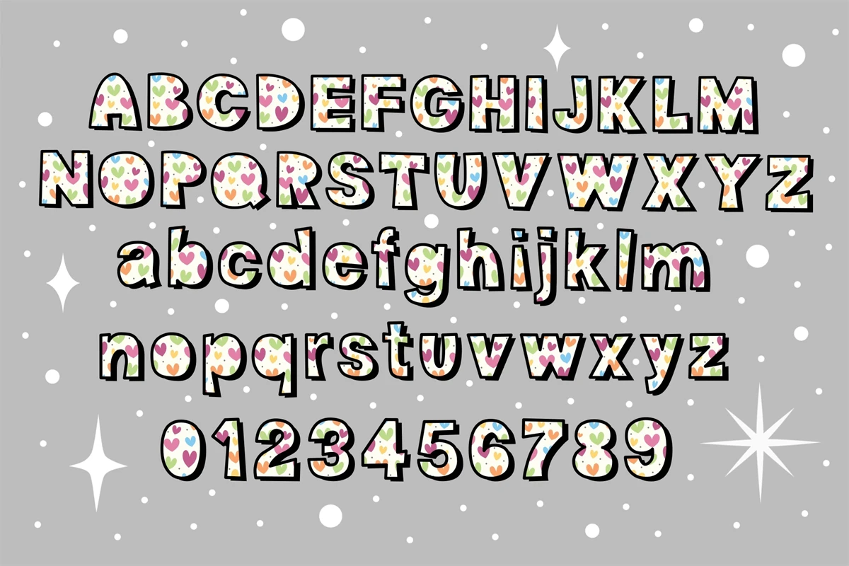 Colorful Heart is a Cute Colorful Pattern Font in Valentine Theme. This font is the perfect fit for all of your t-shirt, social media, crafty DIY projects, and much more!