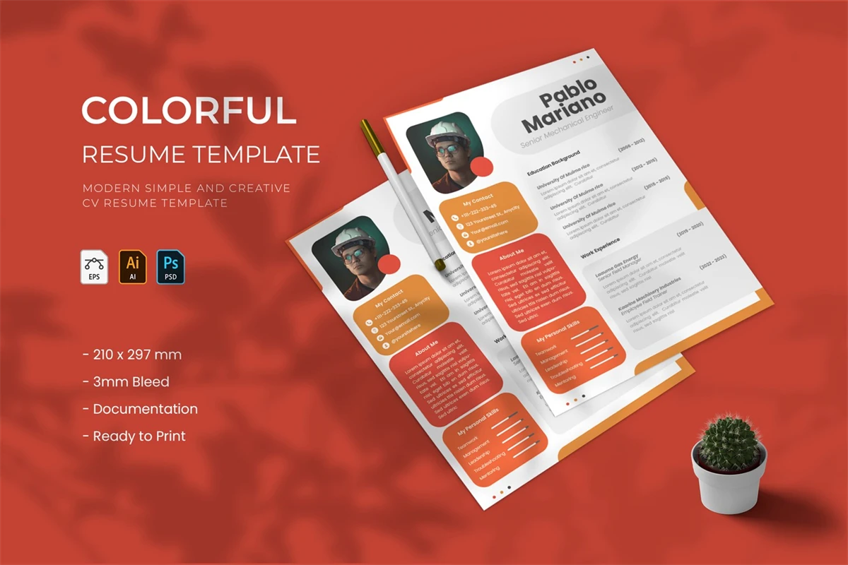 creative resume and cover letter template that will make your resume stand out from the hundreds of resumes employers get. It gives you the information you need, such as your name, contact information, social media links, education, experience, skills and interests. Also, it comes with three different color schemes.