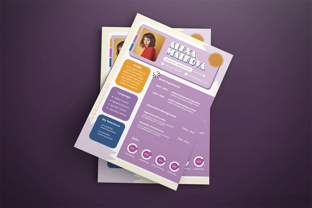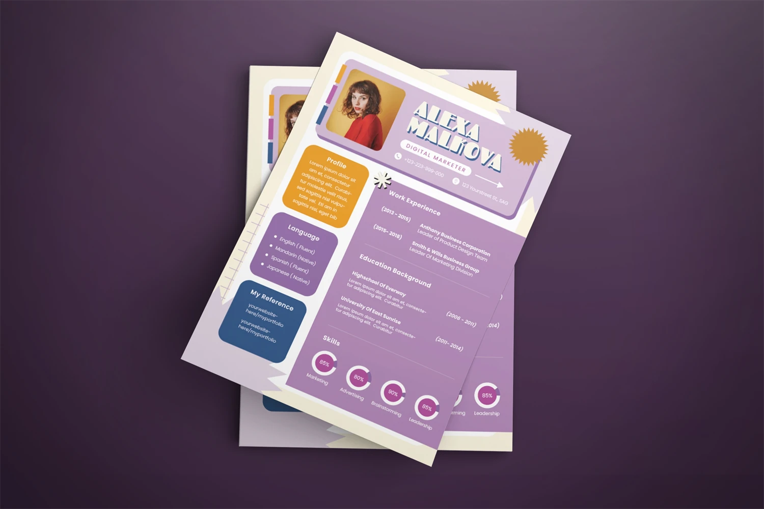 creative resume and cover letter template that will make your resume stand out from the hundreds of resumes employers get. It gives you the information you need, such as your name, contact information, social media links, education, experience, skills and interests. Also, it comes with three different color schemes.