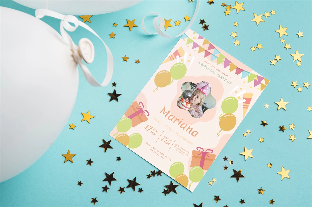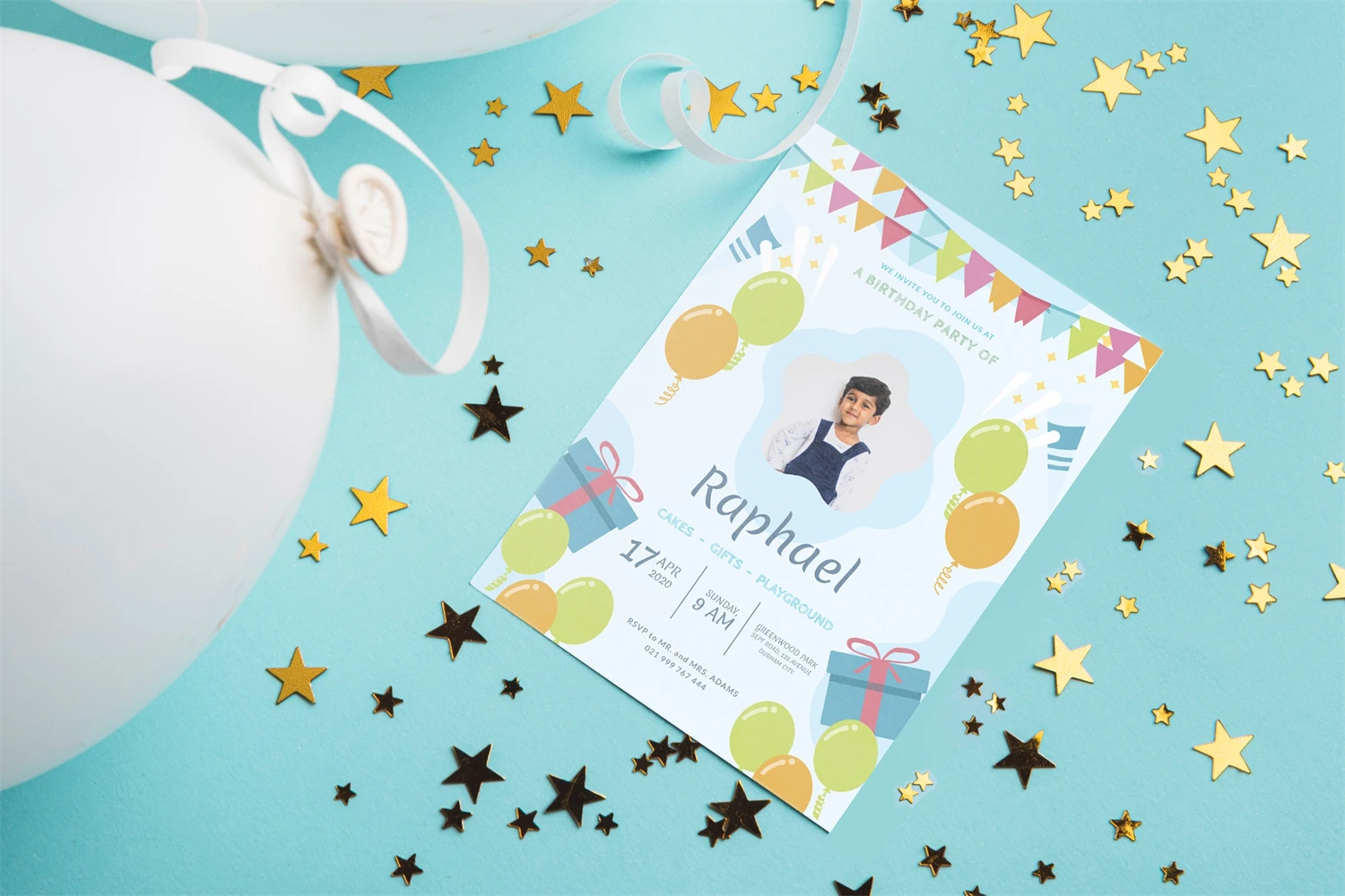 Colorful Surprise - Kids Birthday Party Invitation, is an invitation card leaflet, poster design, etc. Simple and very elegant You can easily edit & adjust each design because each layer such as text, images and shapes are well organized and highlighted.