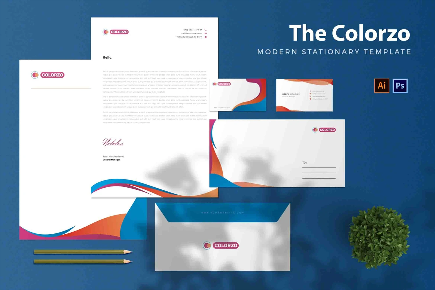 Colorzo - Stationary. This template is great for your business and this design will make your interested, elegant, and easily editable according to your needs. I hope you enjoy for this stationary.