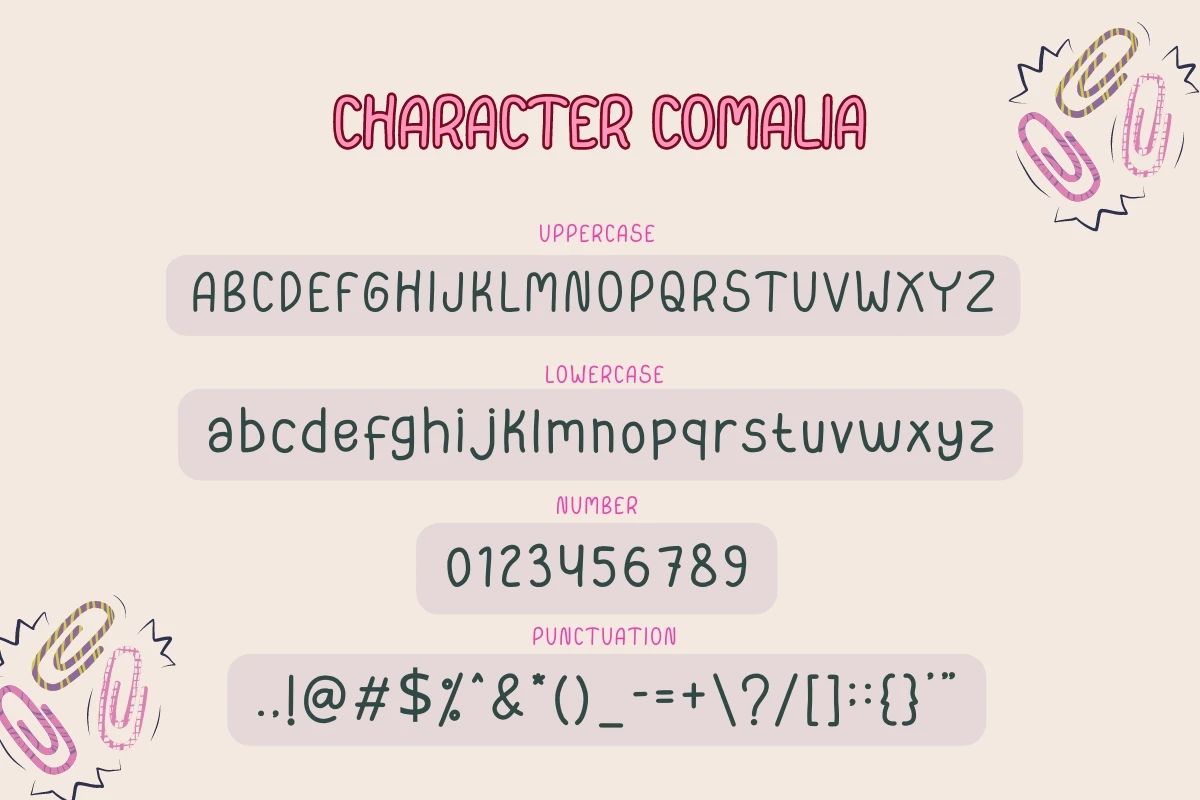 Comalia is a beautiful and unique handwritten font, perfect for making your designs stand out from the crowd. The characters are perfect for wall displays, wedding invitations, social media post logos, advertising, product packaging, product design, labels, photography, watermarks, invitations, stationery and any project that requires modern typography. Get inspired by her unique and beautiful style and add it to your favorite designs!
