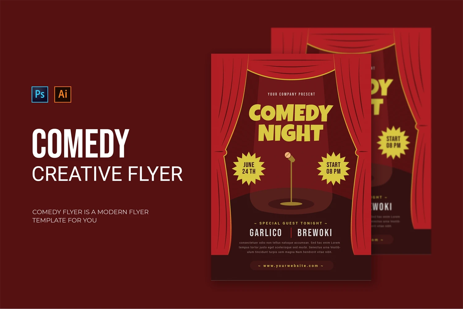 Comedy Tonight - Flyer. This Flyer template is designed for your company's business needs. very clean and elegant, and also easily edited and adjusted to your liking