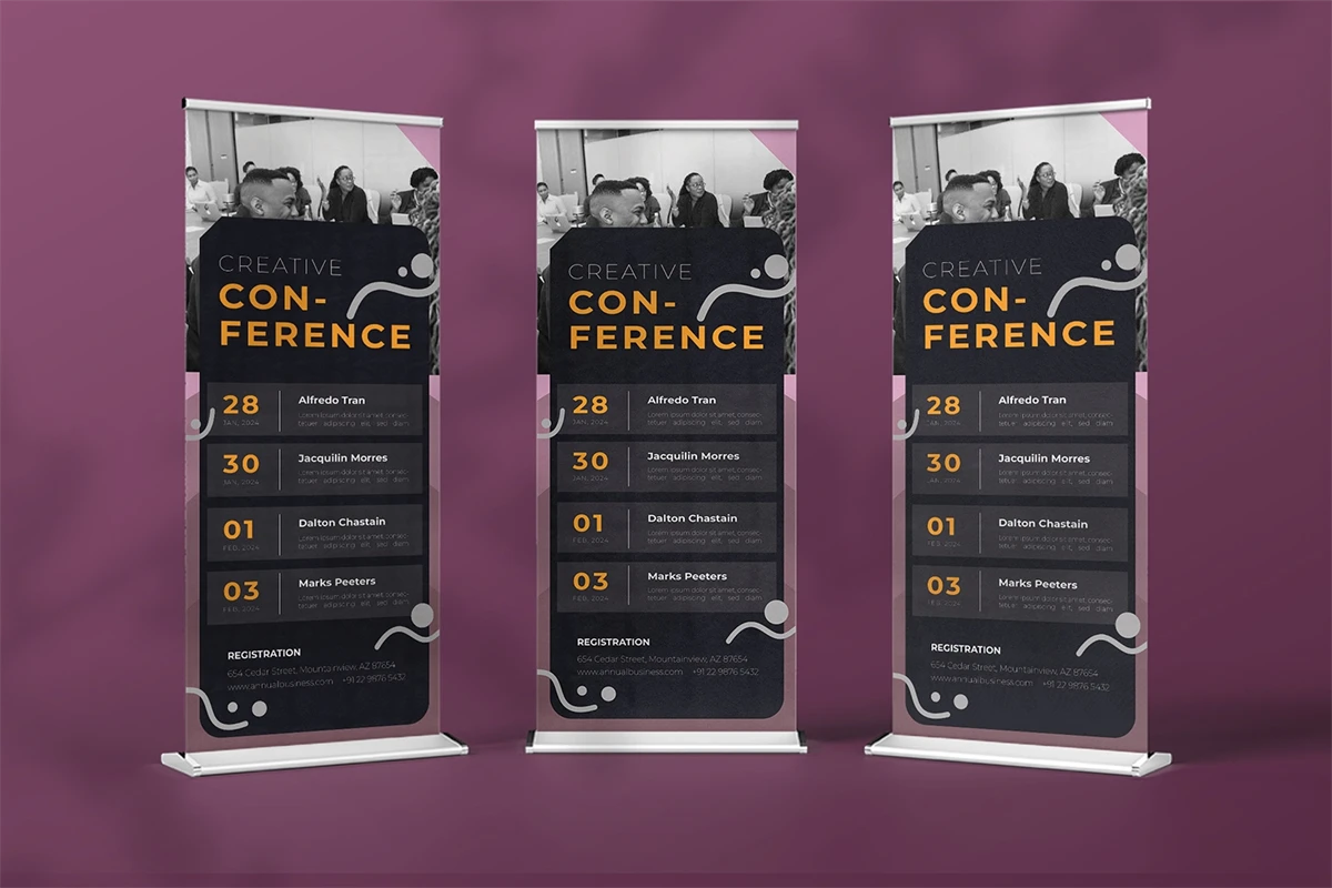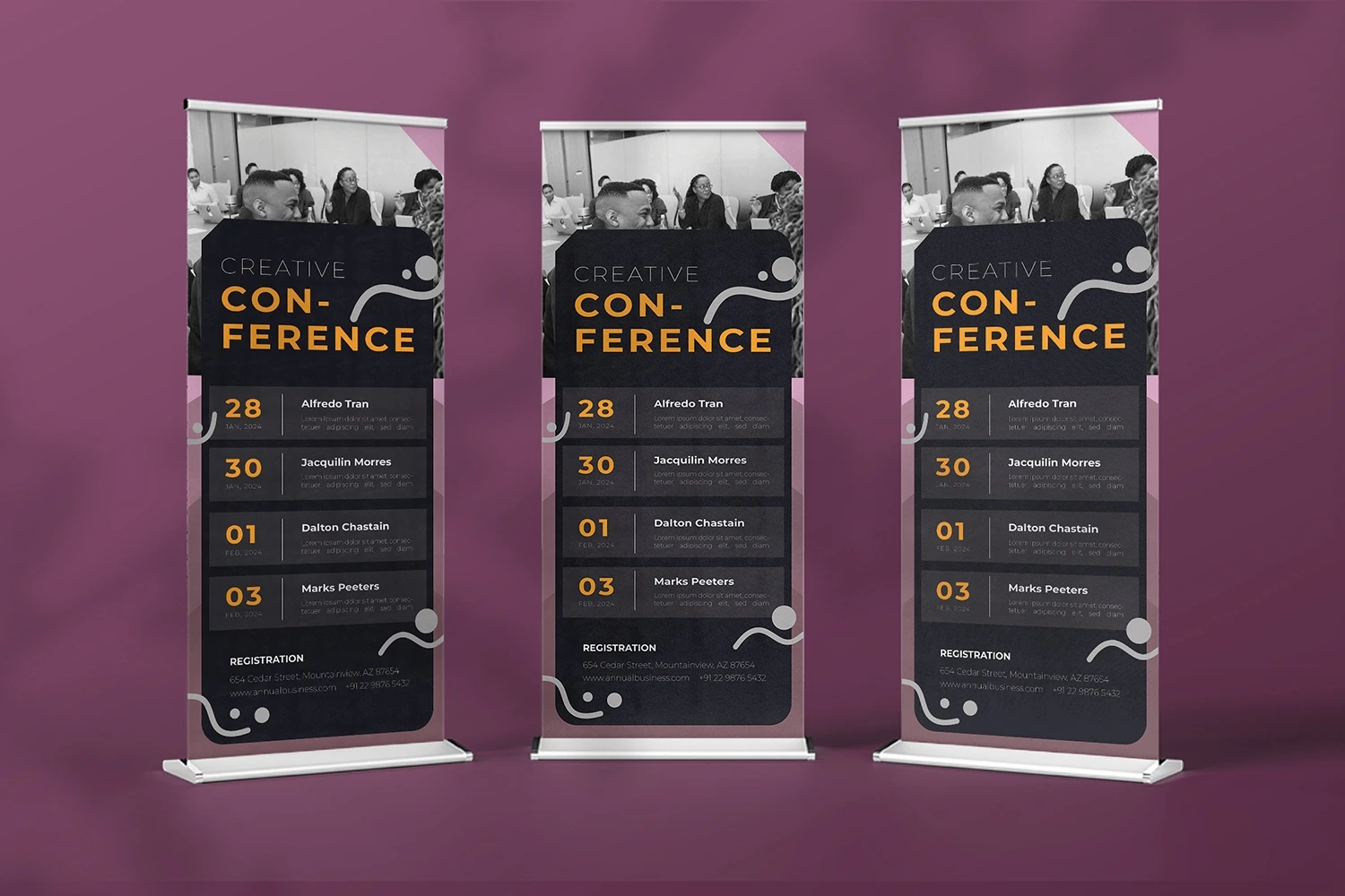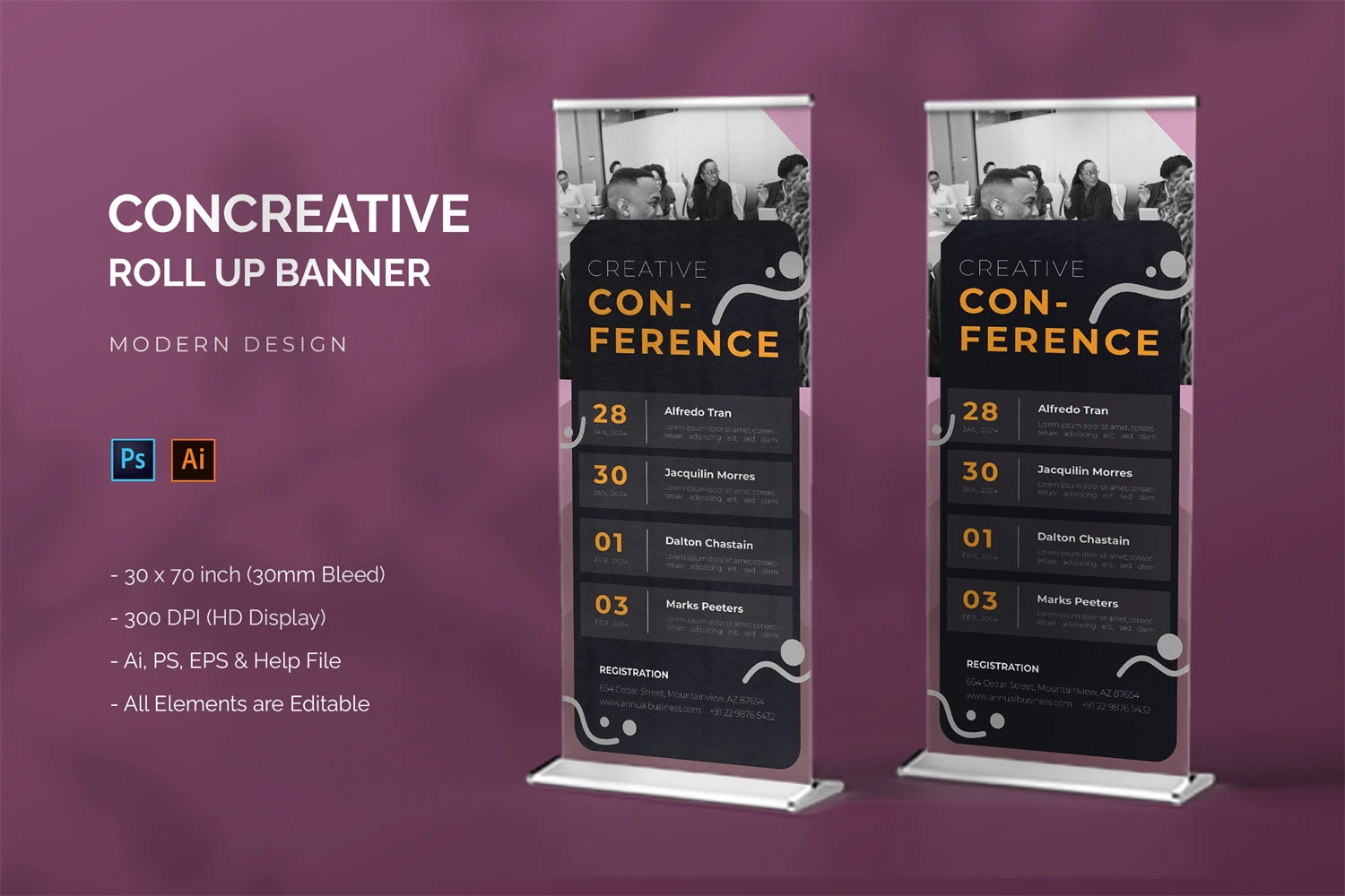 This is **Concreative - Roll Up Banner** Don't wait, get it right now! , All Your Roll-Up Banner Needs, Professional or Personal. This stylish and adaptable template is perfect for your company's promotional materials.