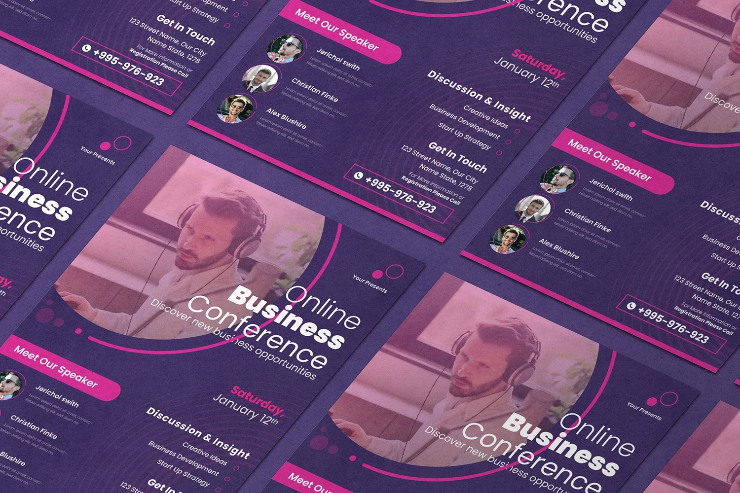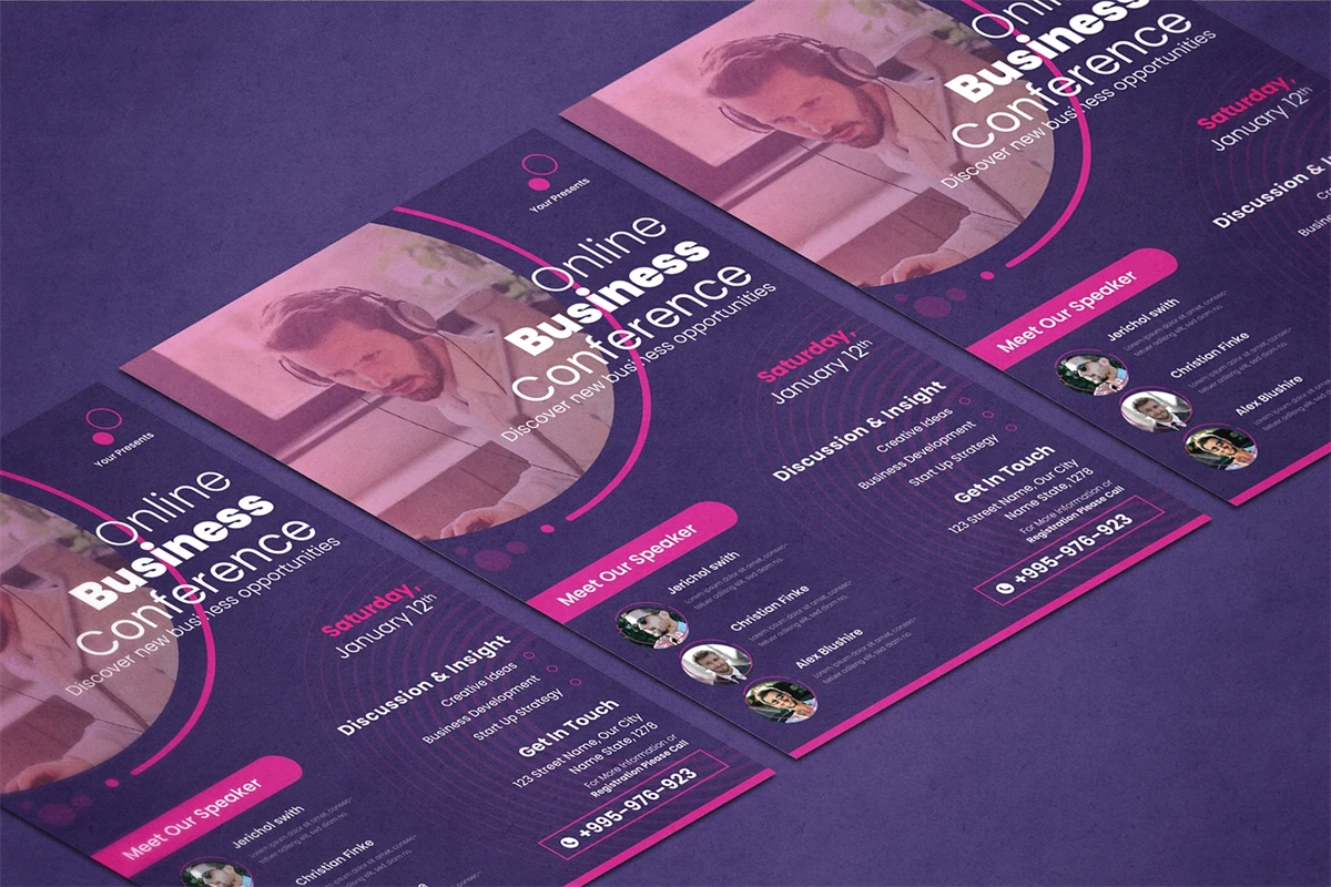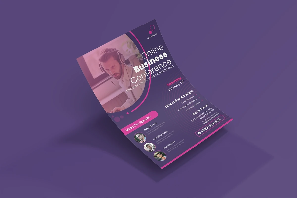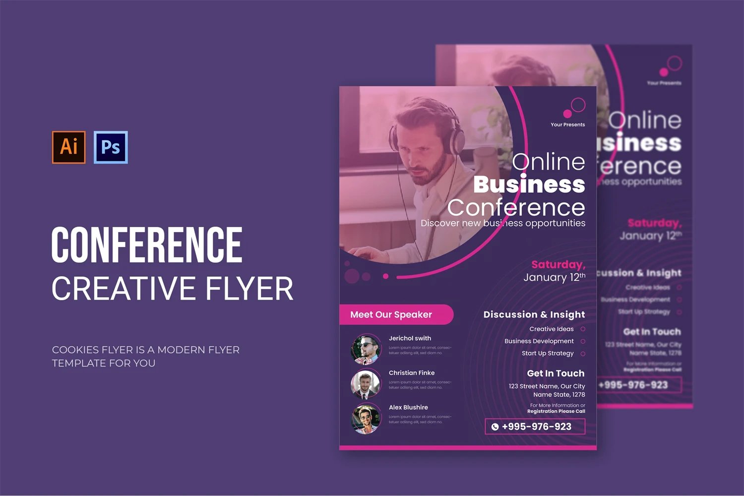 Conference Purple - Flyer. This Flyer template is designed for your company's business needs. very clean and elegant, and also easily edited and adjusted to your liking