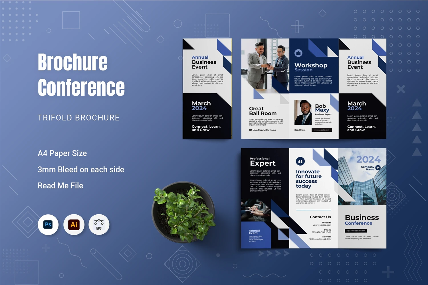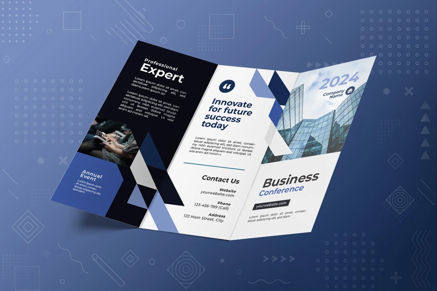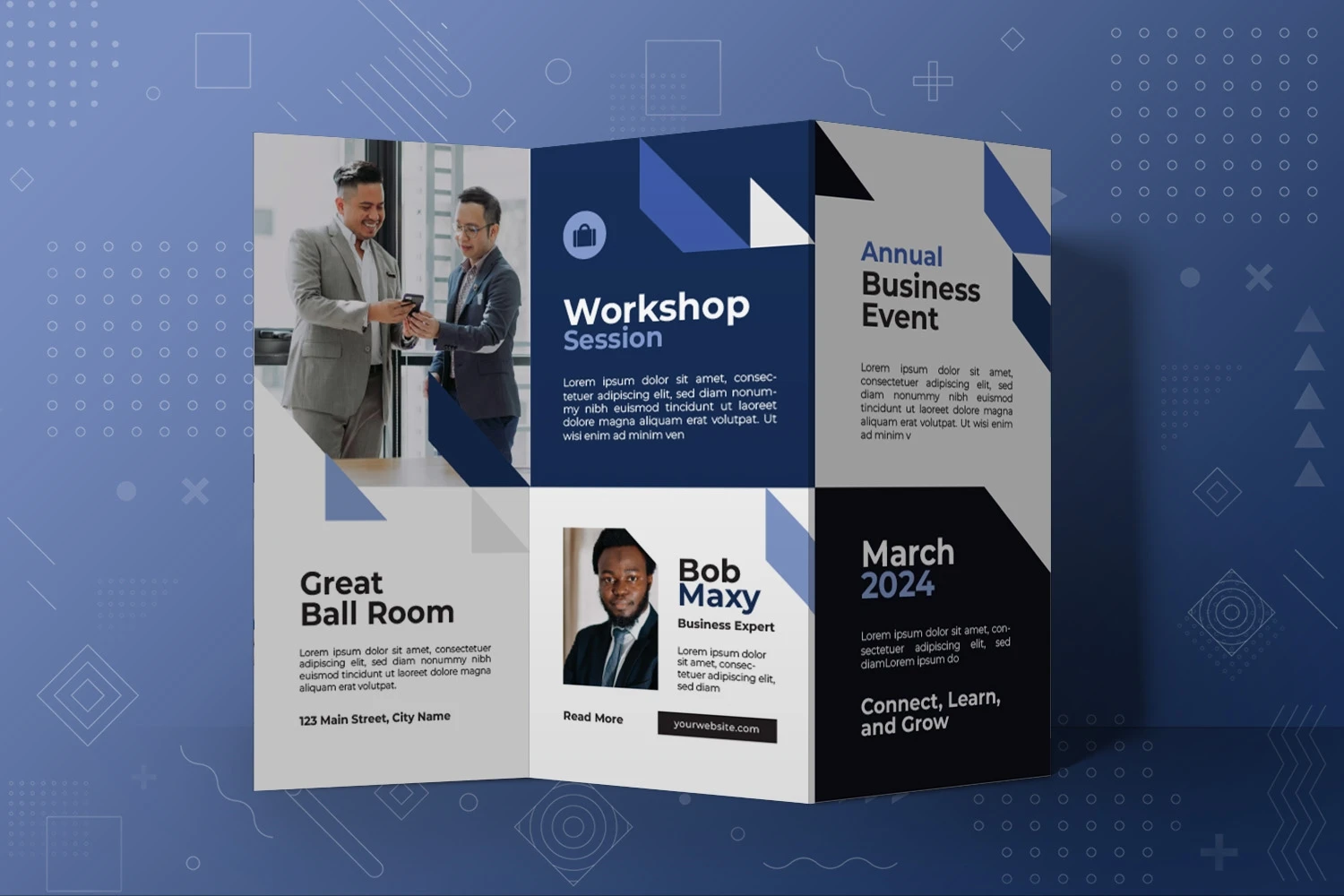 Discover our trifold brochure design template for creative communication. Each fold reveals information, visuals, and captivating content, making it a versatile platform to convey your impactful message.