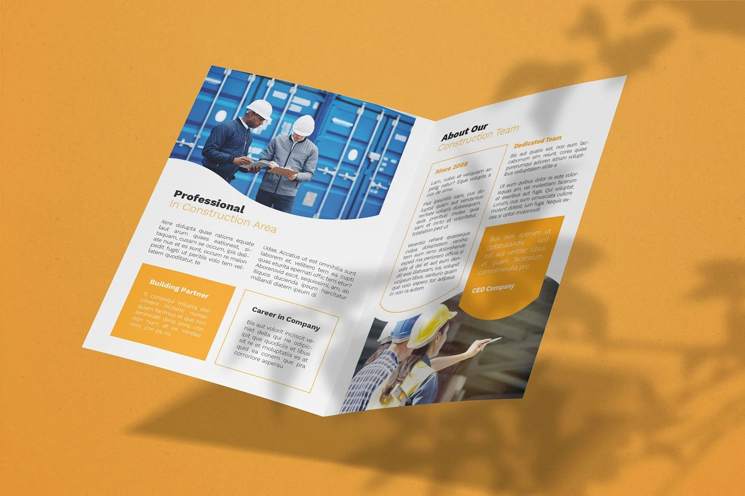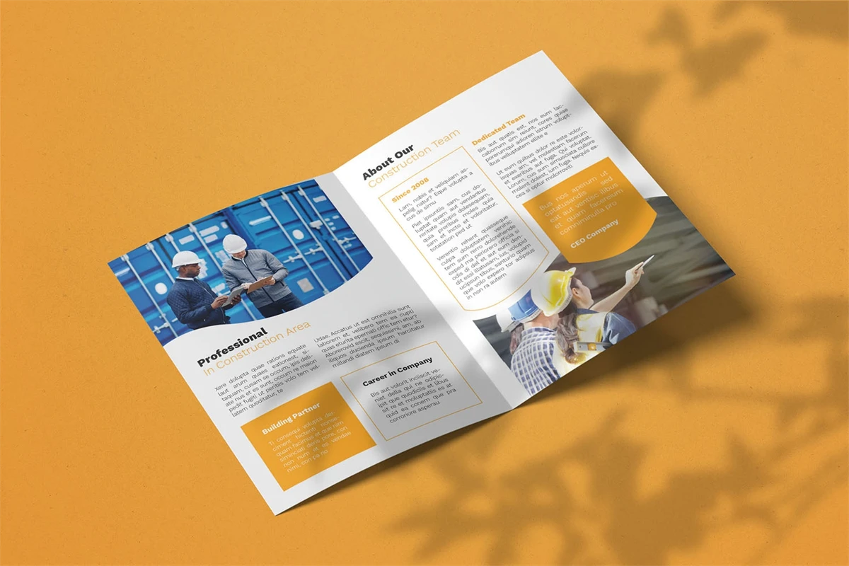 Construction Company - Bifold Brochure We present this Bifold Brochure for you, simple and very elegant, and this Bifold Brochure is suitable for all types of your business, made with adobe inDesign, very easy to customize, Hope you Like it, dont forget to rate, Thanks.