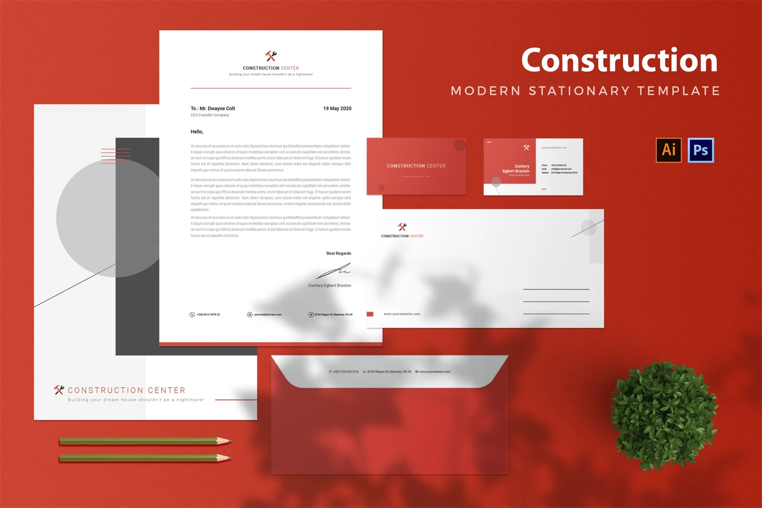 Construction Company - Stationary. This template is great for your business and this design will make your interested, elegant, and easily editable according to your needs. I hope you enjoy for this stationary.