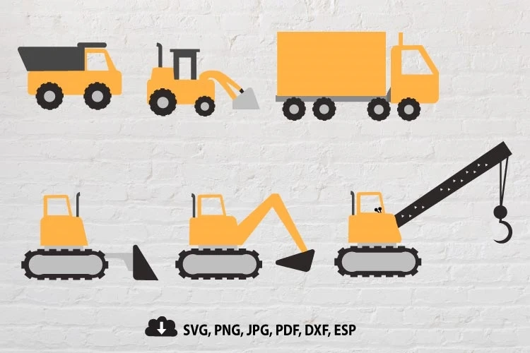 Construction Fleet Svg, Construction Truck Svg, Construction Clipart, Trucks Svg, Heavy Machine, Construction Silhouette, Cut file, Cricut