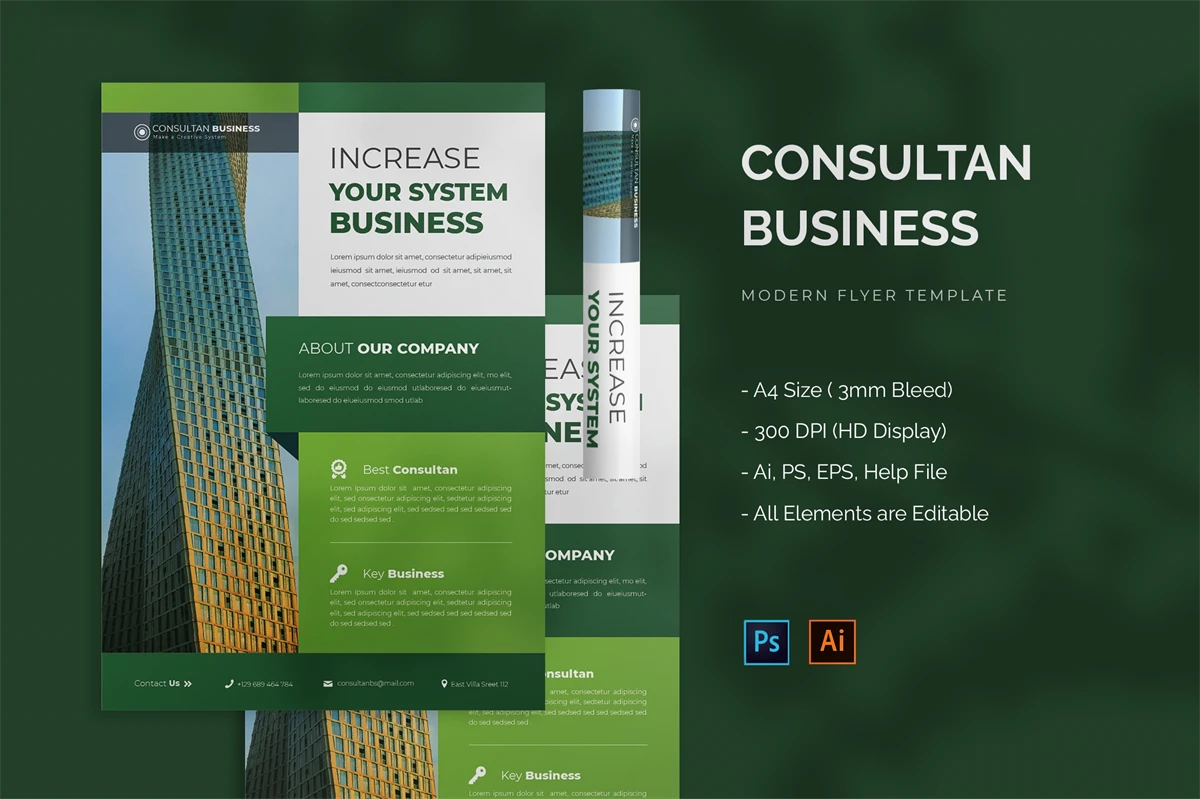 Consultan Business - Flyer. This Flyer template is designed for your company's business needs. very clean and elegant, and also easily edited and adjusted to your liking