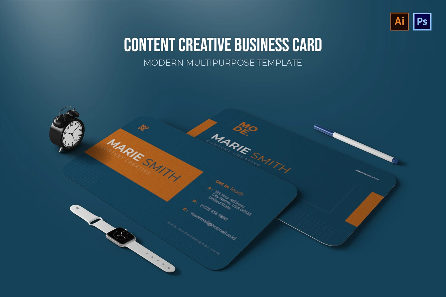 This Content Creative - Business Card make your business cards look professional. You can use this business card for, identity, company business cards, Corporate Business, Creative, Blogs, Photographers, Artists, Designers, etc.