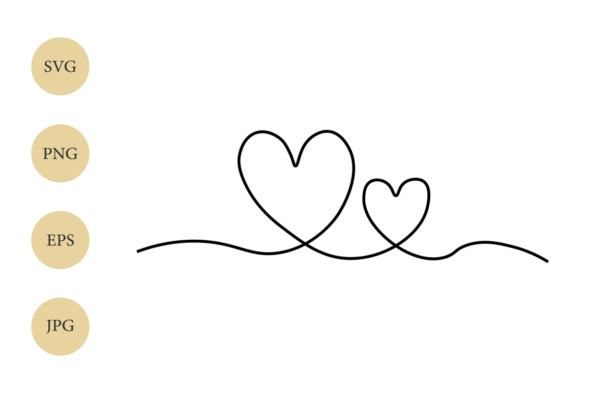 Continuous One Line Heart SVG, Hearts SVG, Double Heart SVG, Love SVG, Valentines Svg, Wedding SVG, Couple SVG, Cricut Digital Download