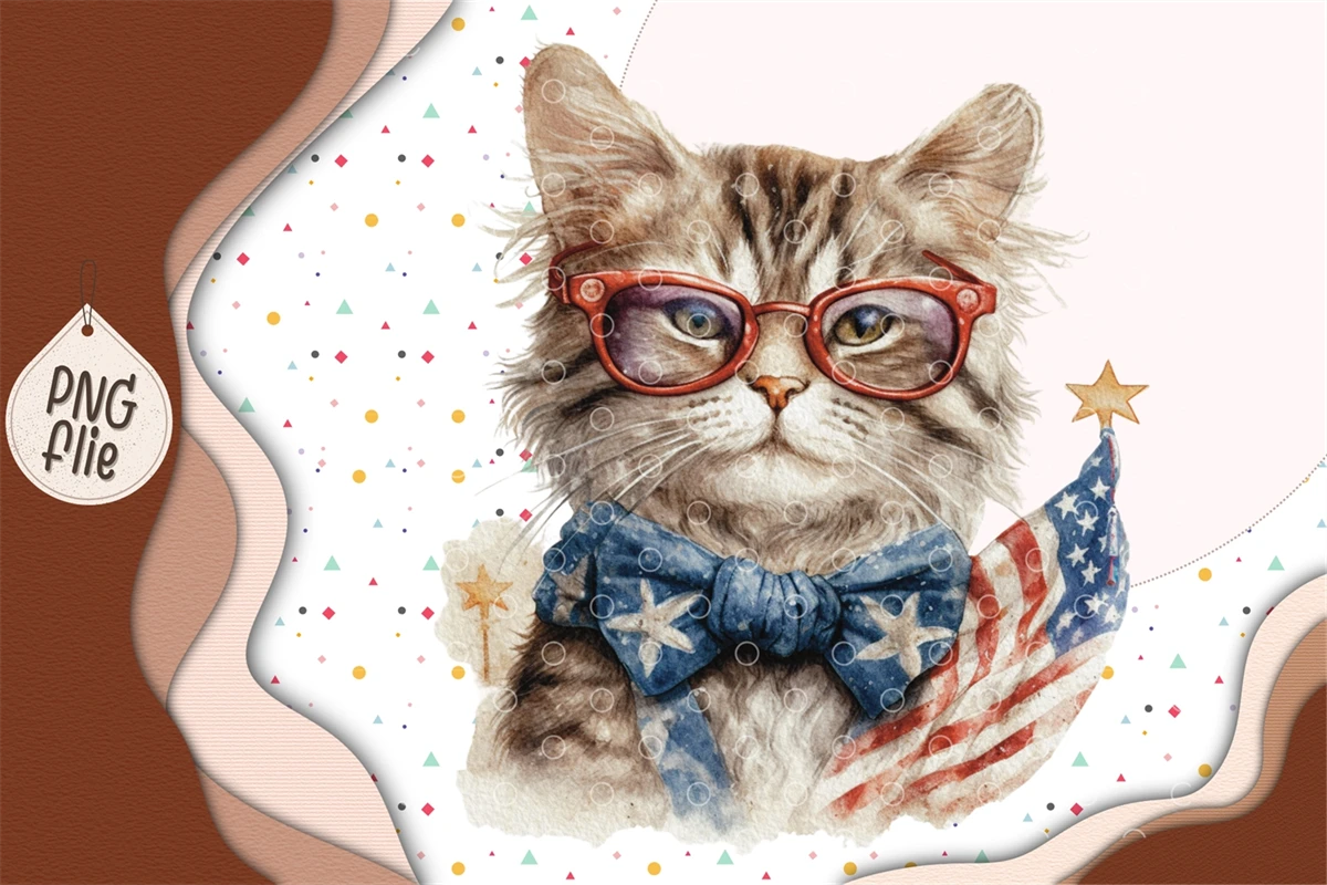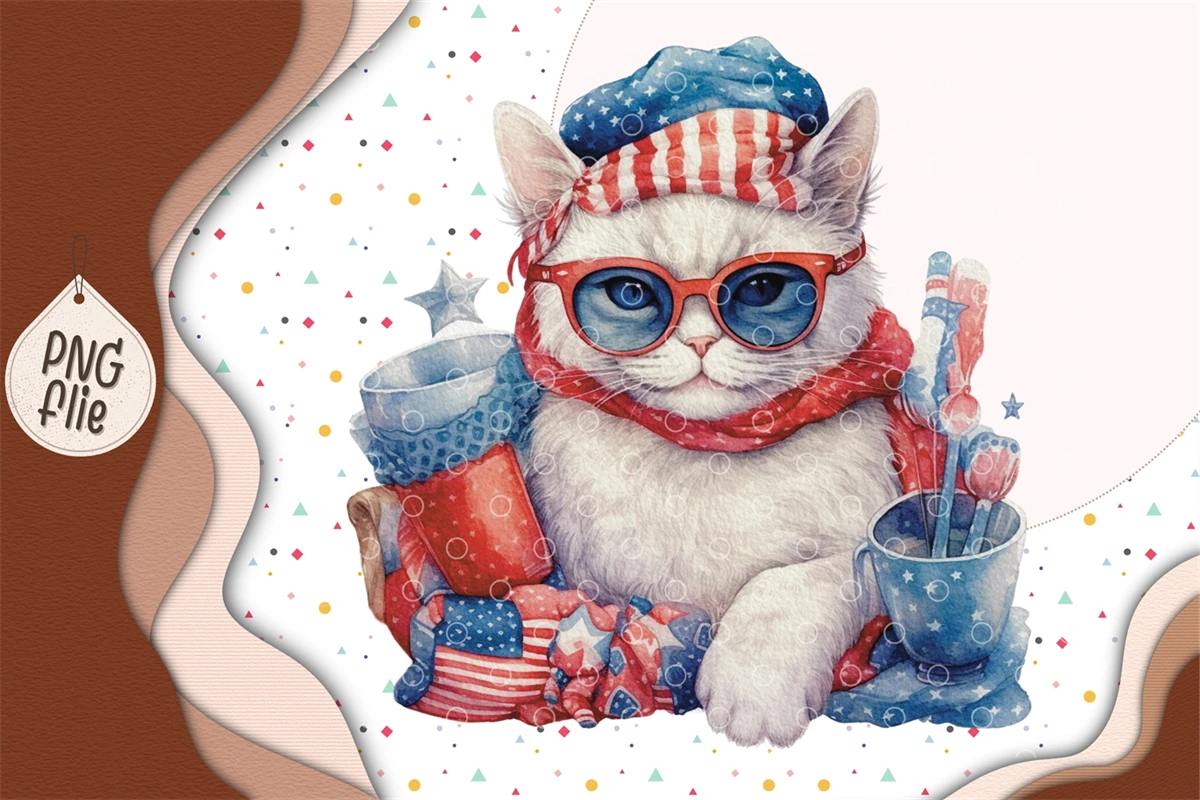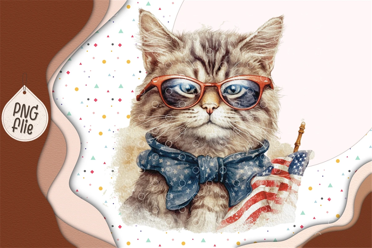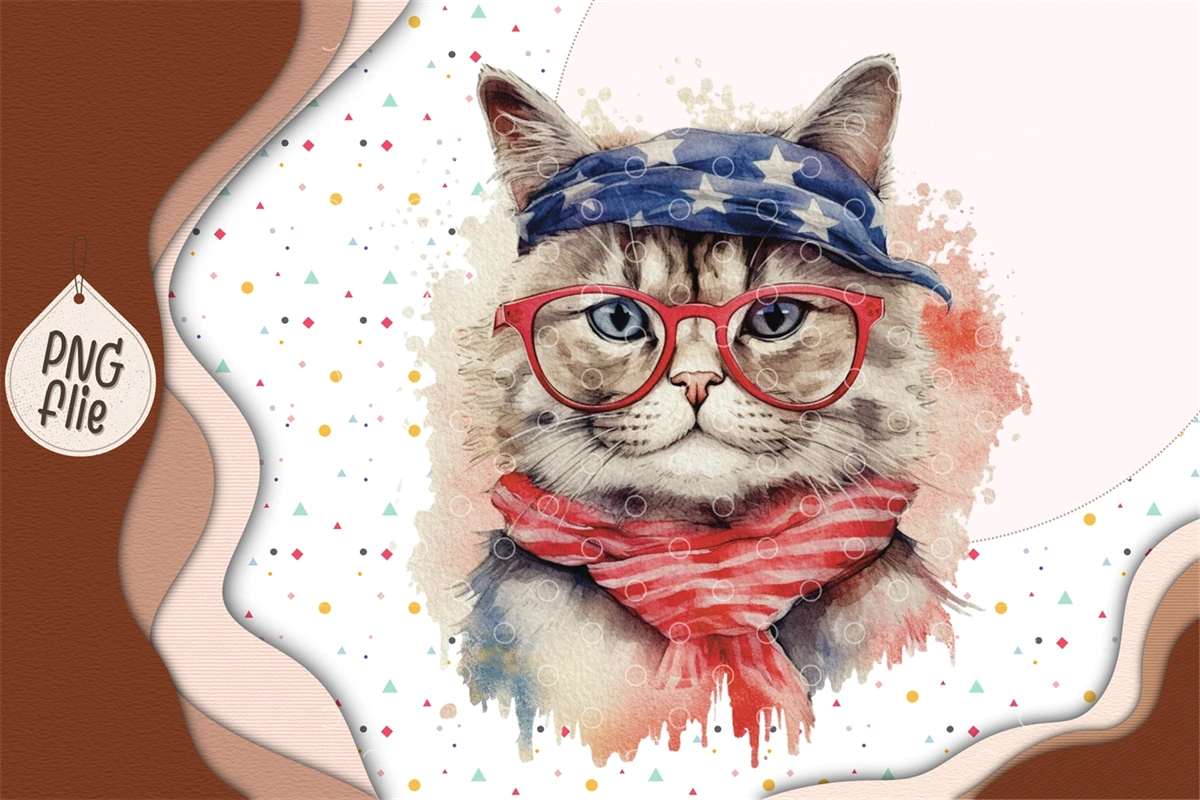Cool cat on 4th of July in watercolor clipart