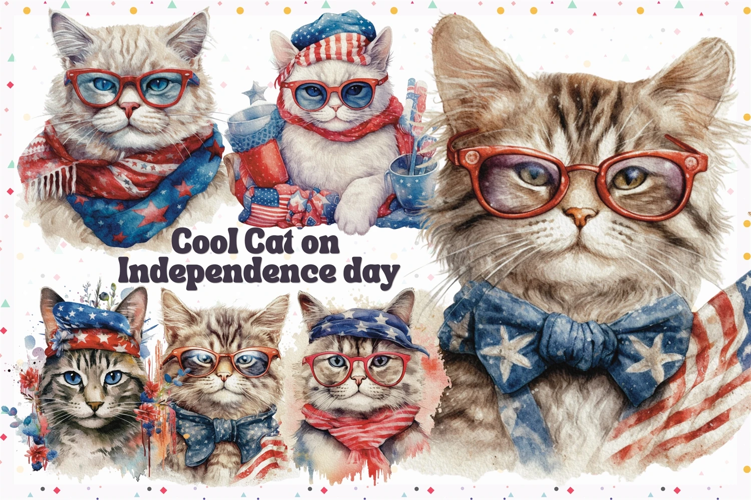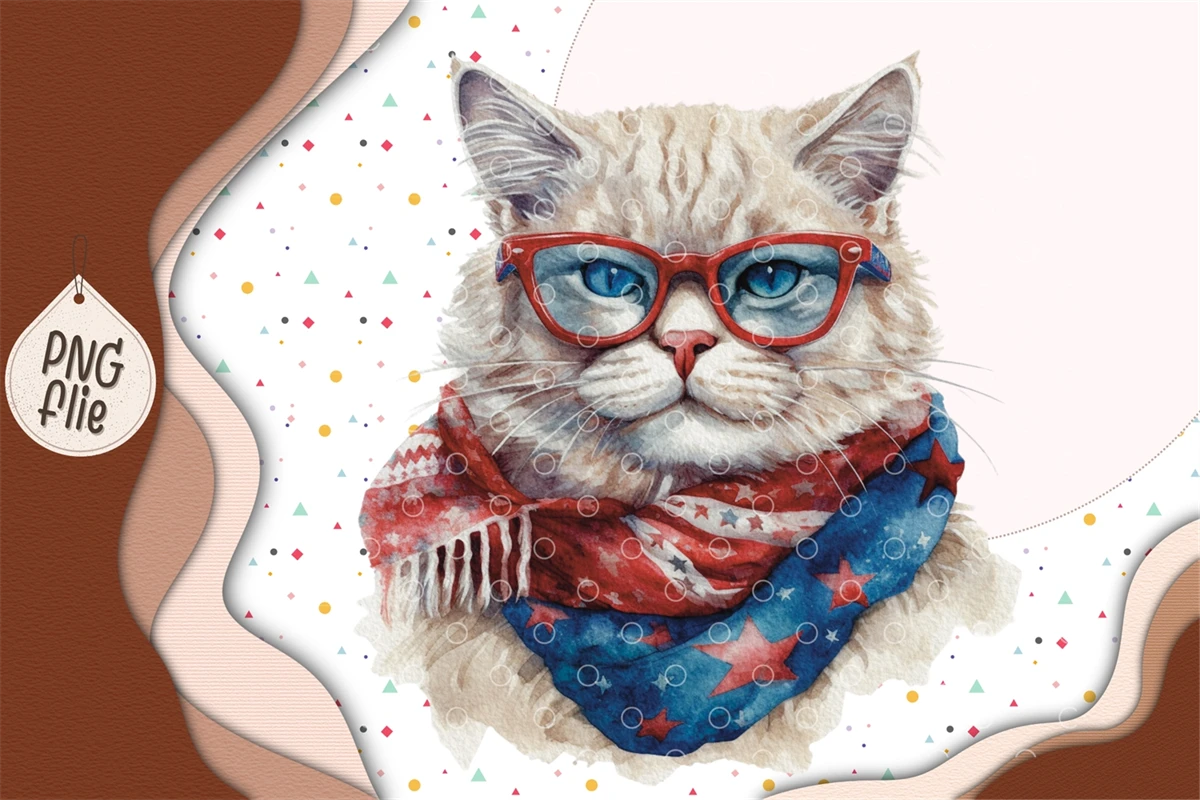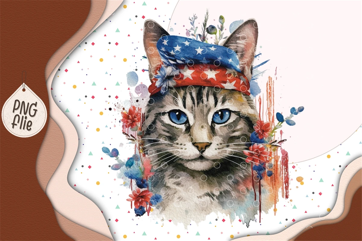 Cool cat on 4th of July in watercolor clipart