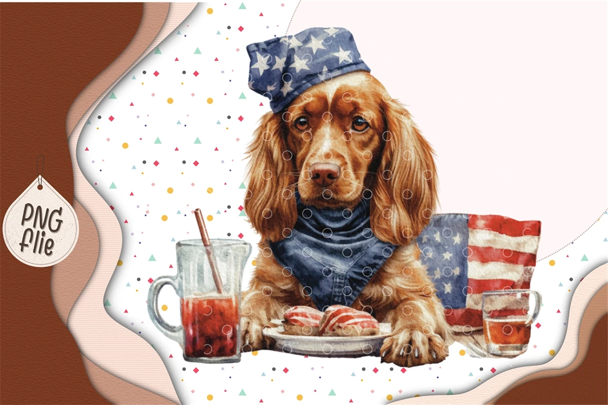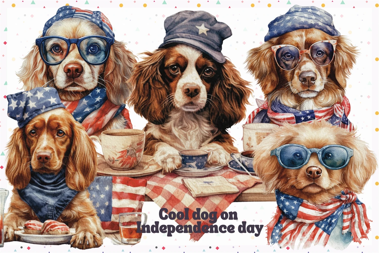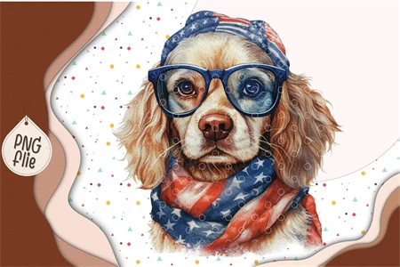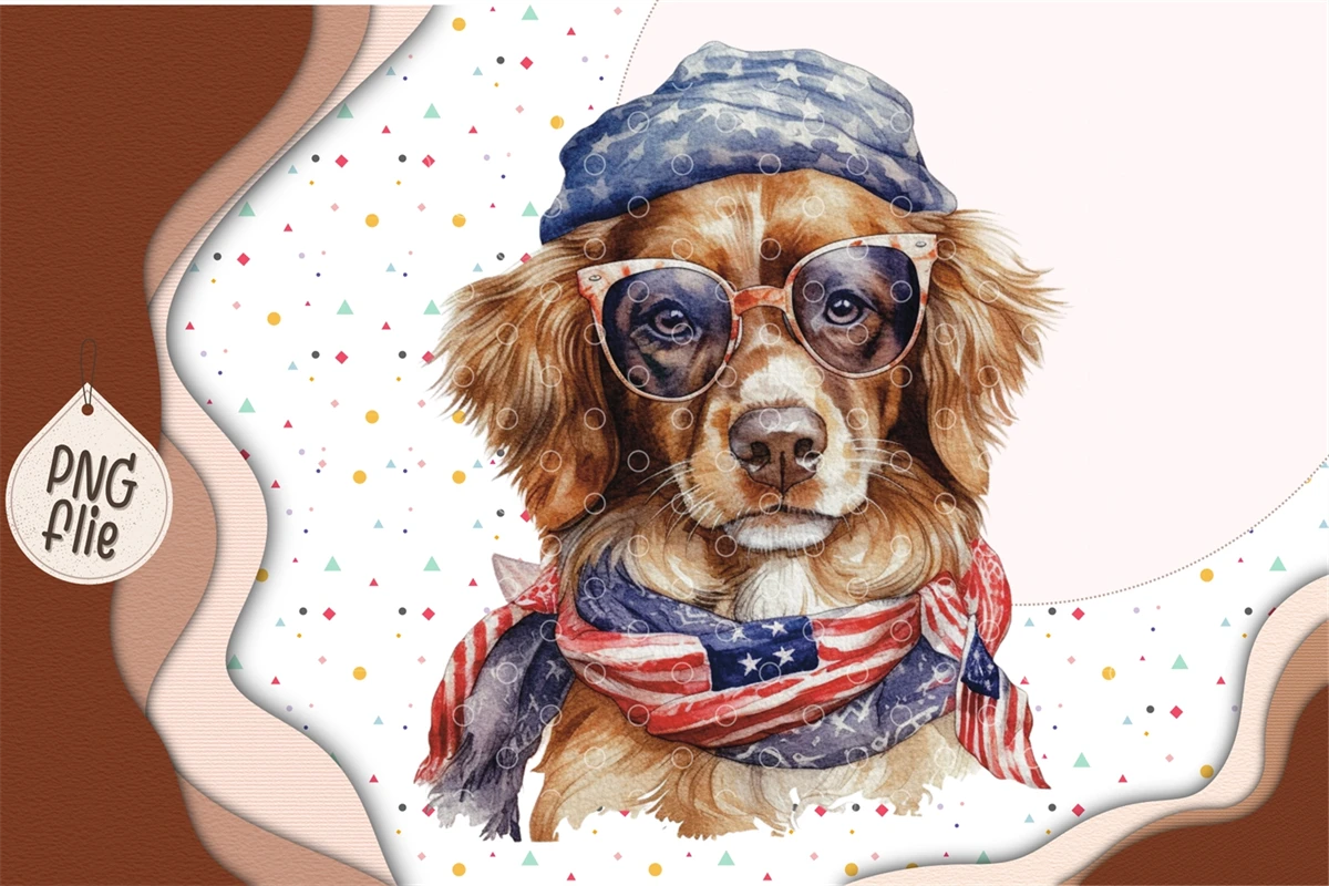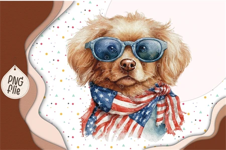 Cool Dog on 4th of July in watercolor clipart