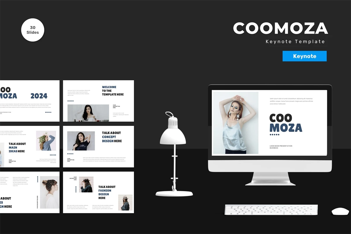 Get it now! **Coomoza - Keynote Template** for All Business and Personal Needs All elements on this template are editable; input your content, replace your image with a placeholder, change the color, and all presentations include an animated slide to present your slides.