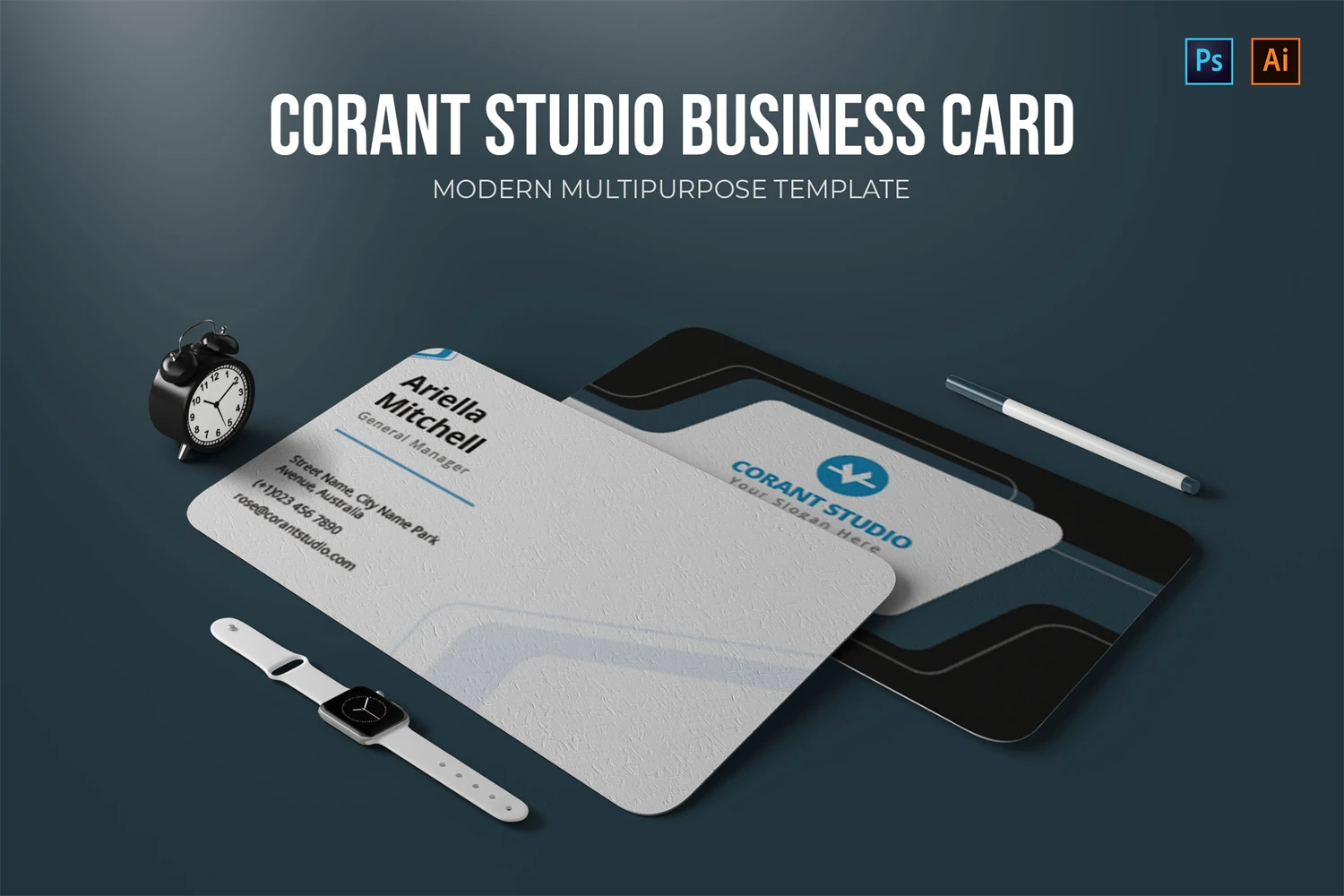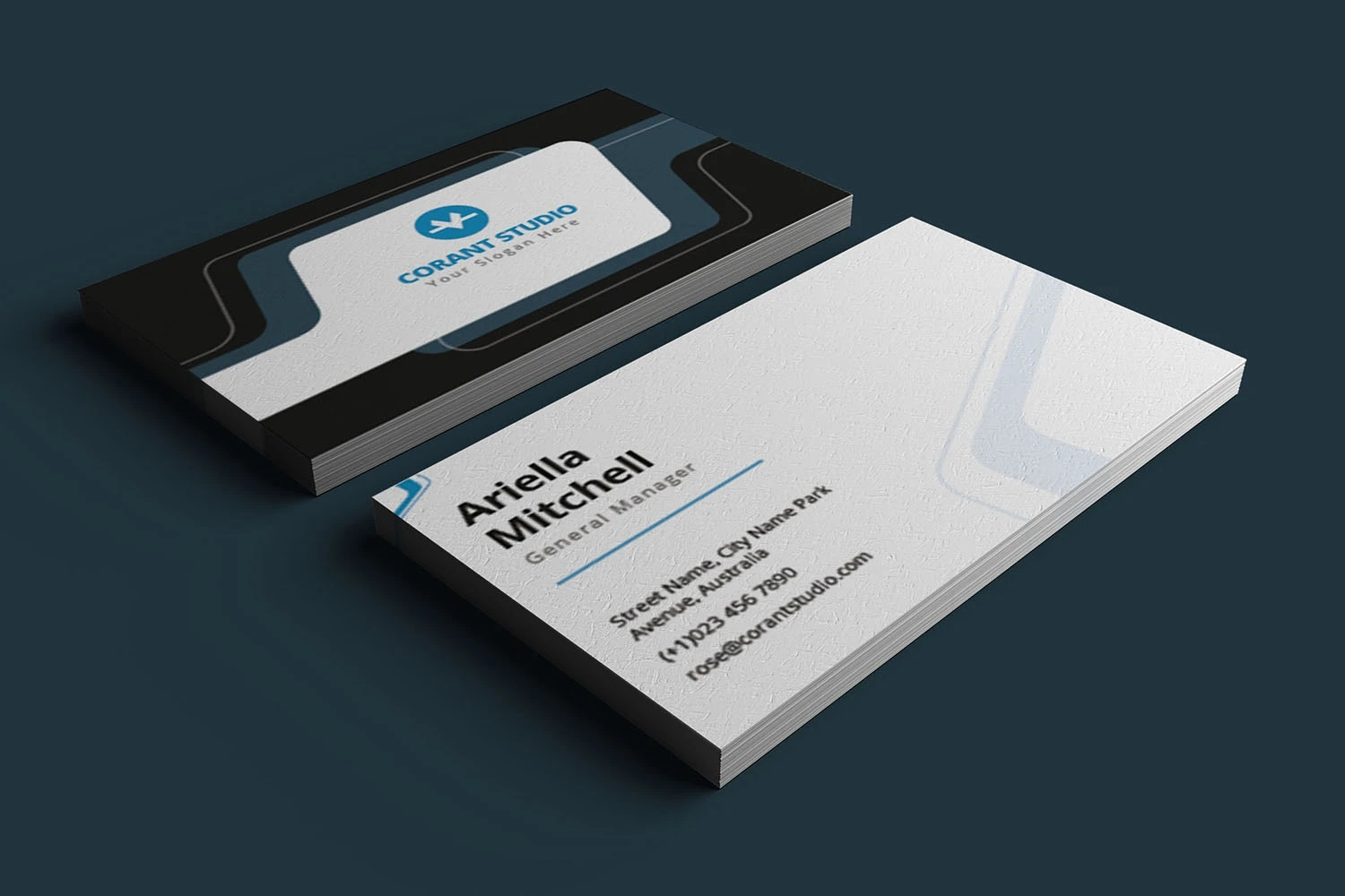 This Corant Studio - Business Card make your business cards look professional. You can use this business card for, identity, company business cards, Corporate Business, Creative, Blogs, Photographers, Artists, Designers, etc.