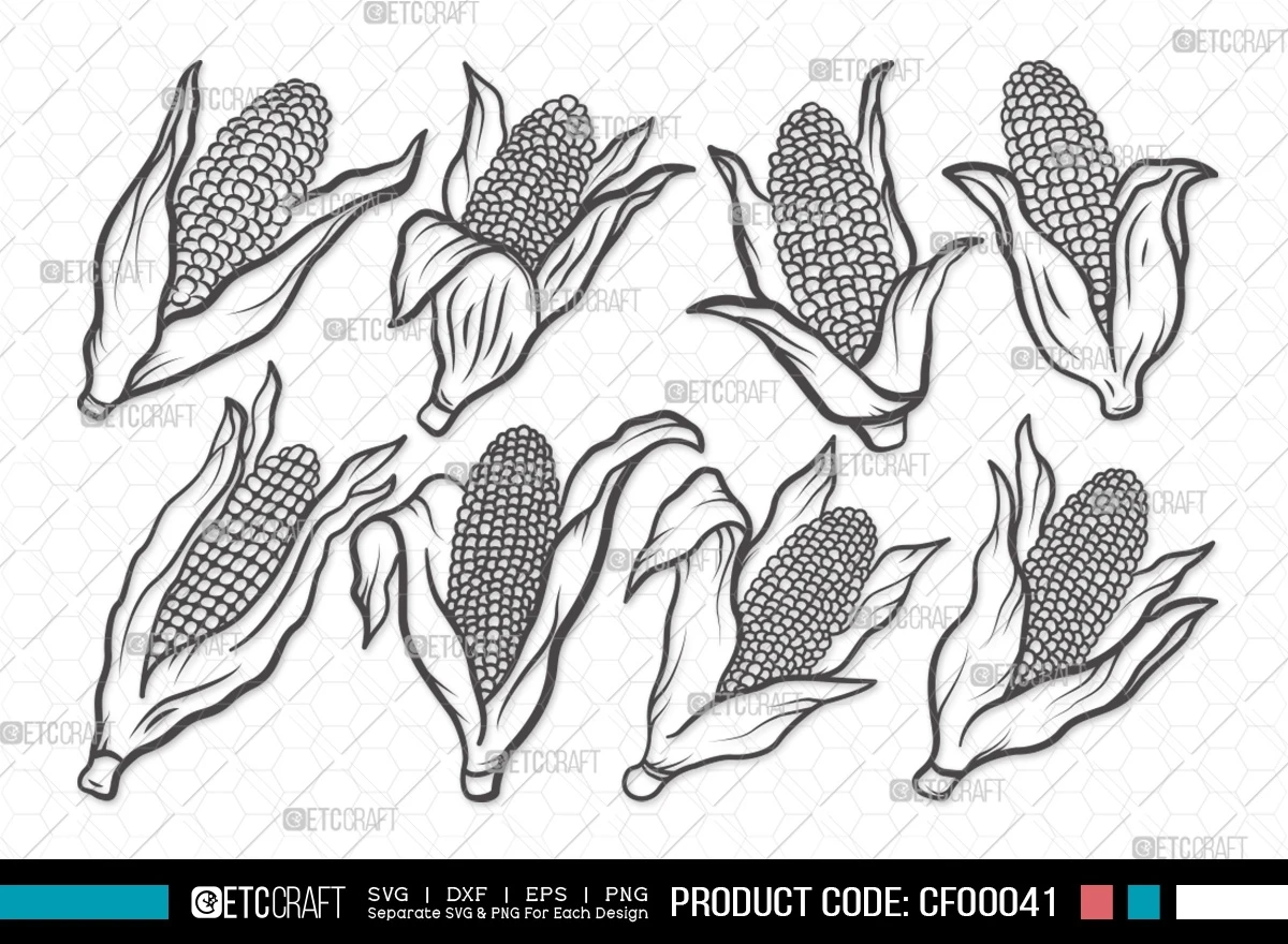 Dive into the heart of summer with our Corn Outline Maize Cob Summer Vegetable Farm SVG Cut File. This digital collection captures the essence of sun-soaked fields and the delicious freshness of corn, a staple of the season.