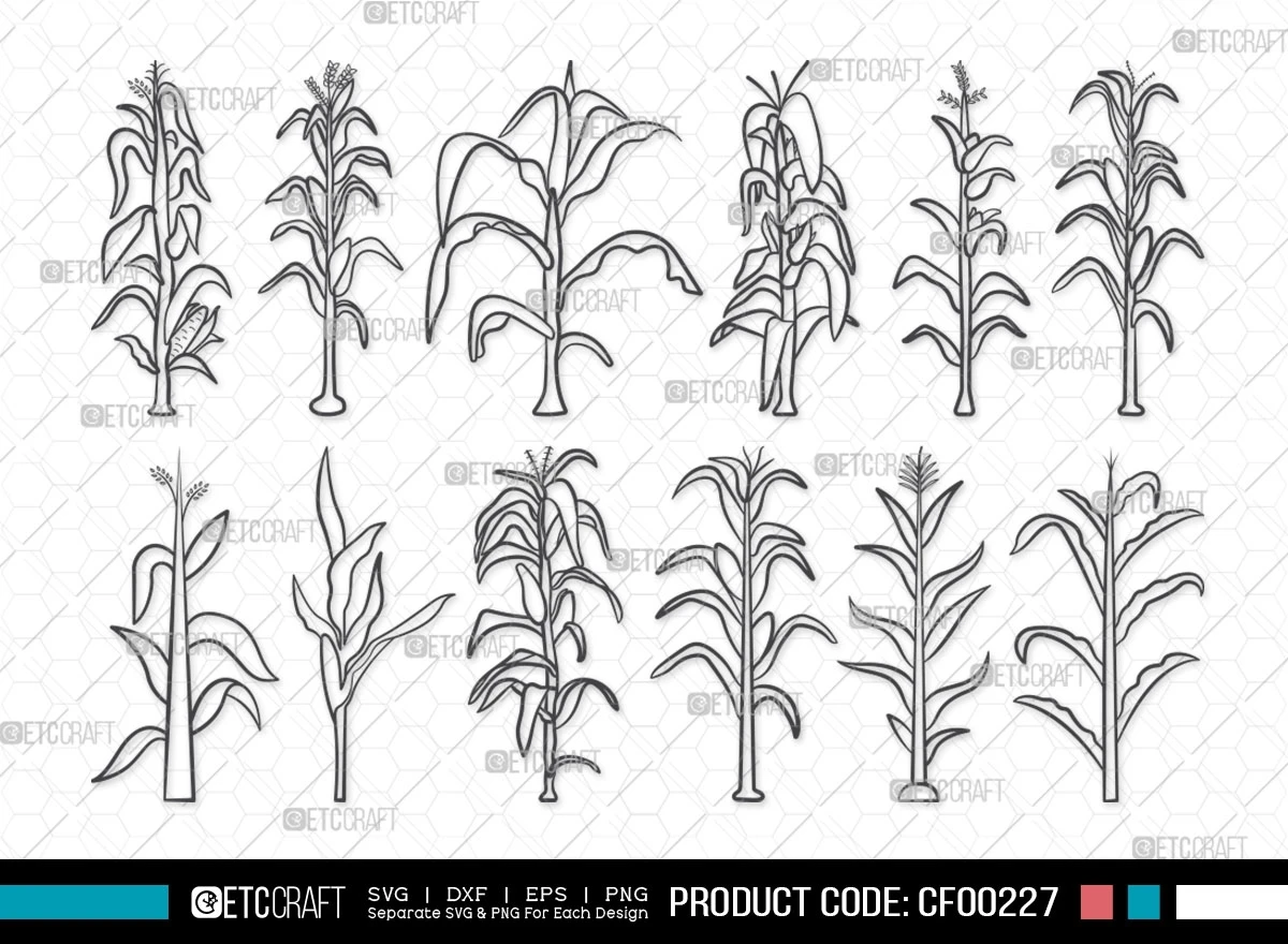 Elevate your design projects with the Corn Stalk Outline Corn Plant Icon SVG Cut File Bundle. Embrace the beauty of nature with corn-themed elements that cater to your artistic needs, whether you're working on agricultural, nature-focused, or imaginative ventures. Don't miss the chance to add a touch of nature to your designs. Get this bundle today and let your creativity grow!